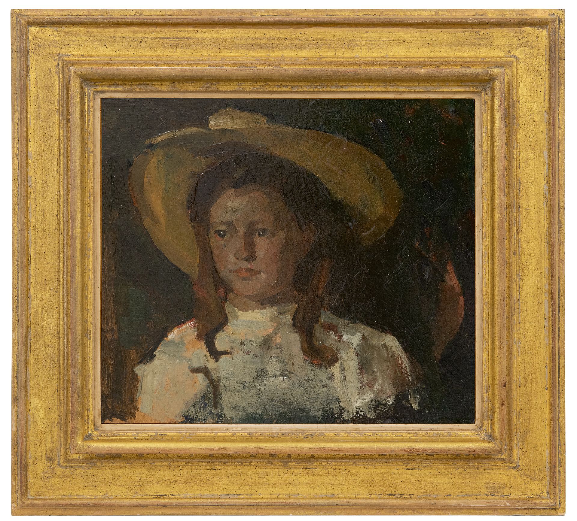 Louise Fritzlin | Meisje met fluwelen hoed, olieverf op doek, 44,4 x 30,6 cm, gesigneerd l.b. en te dateren 1907