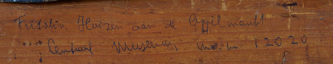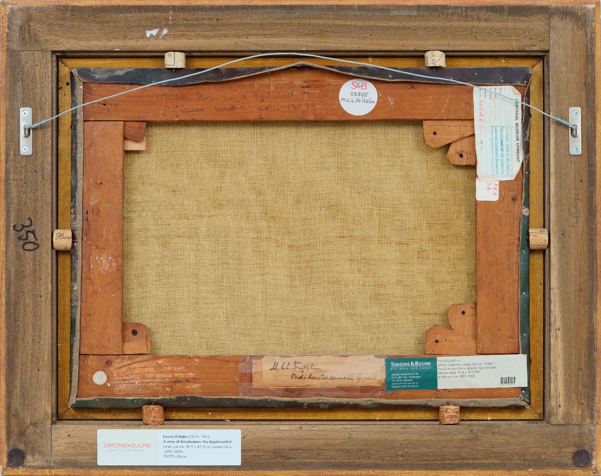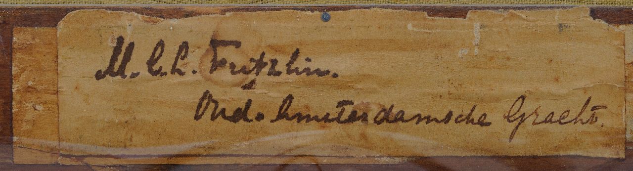 annotatie op etiket op spieraam: 'M.C.L. Fritzlin. Oude Amsterdamsche Gracht'