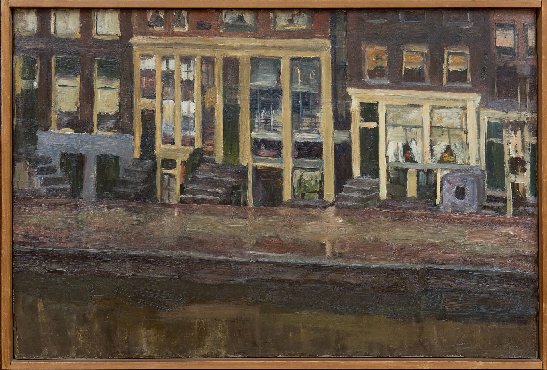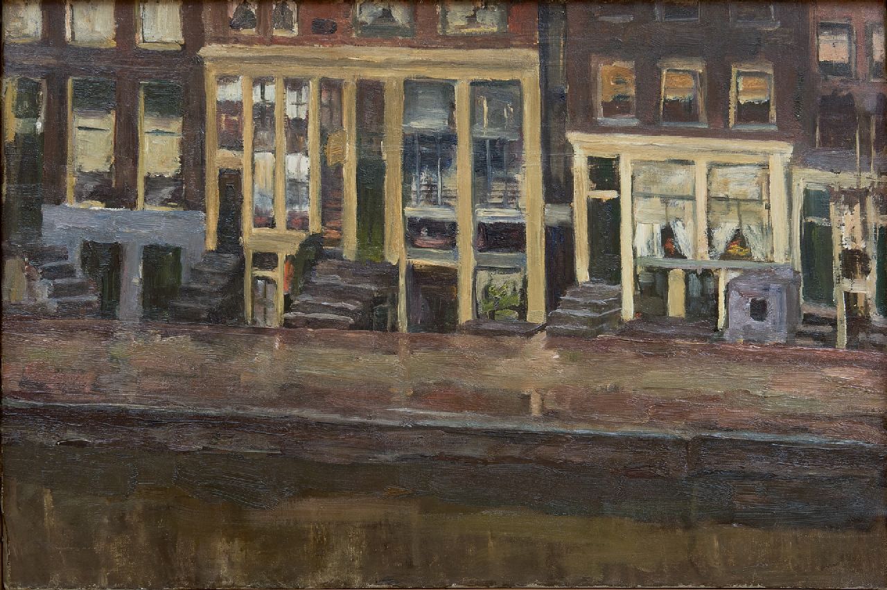 Louise Fritzlin kunstwerk • schilderij • voorheen te koop Oude huizen aan de Appelmarkt, Amsterdam