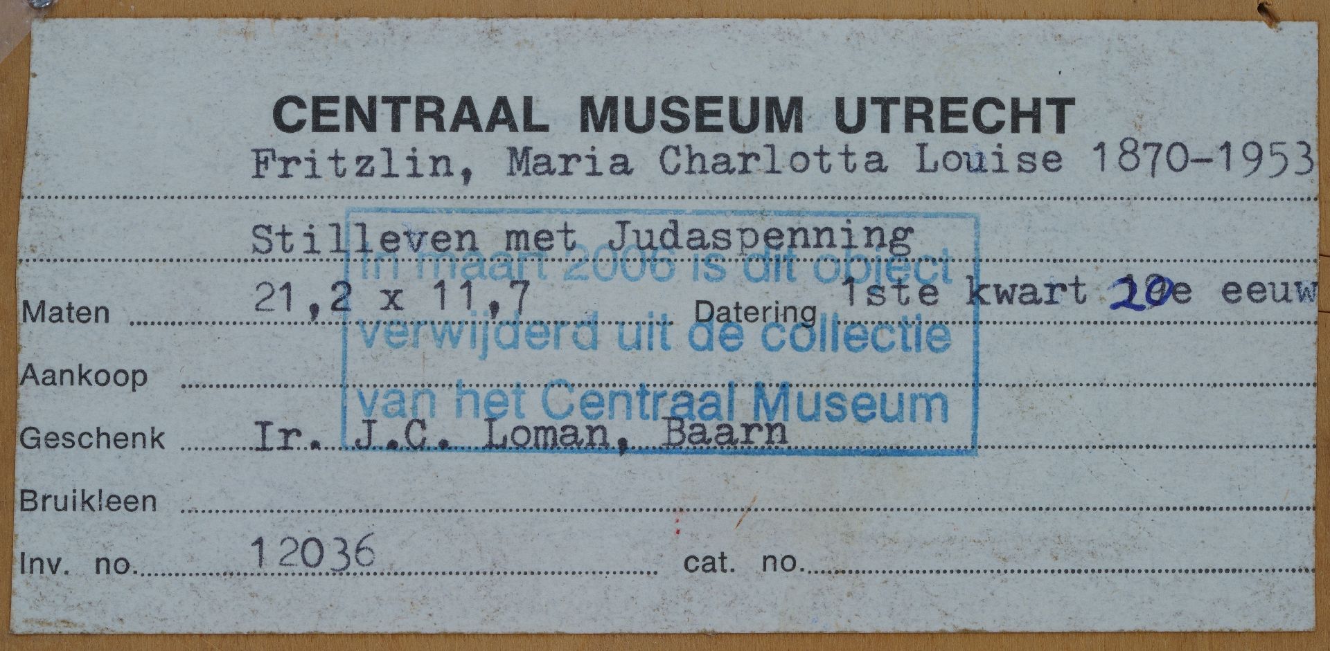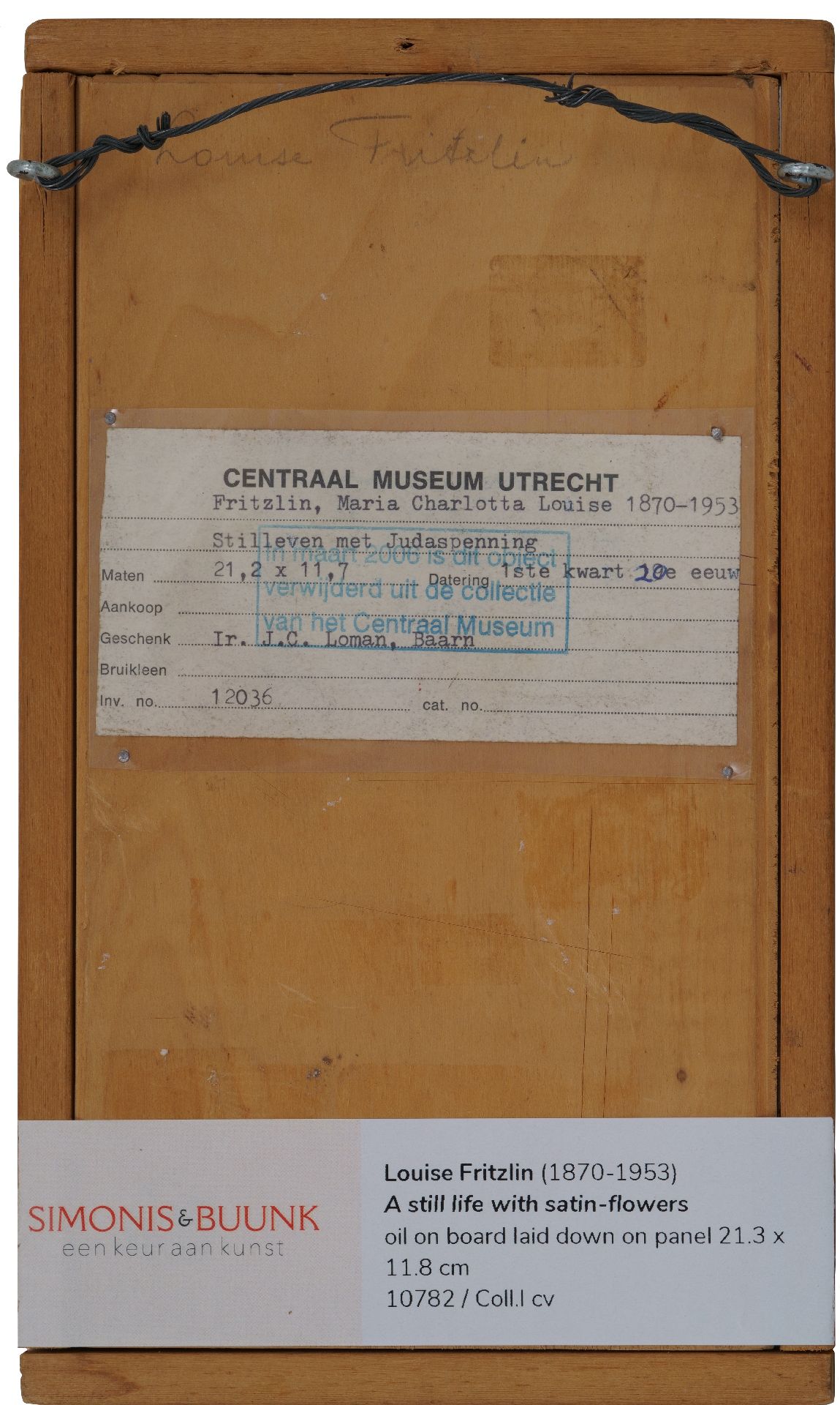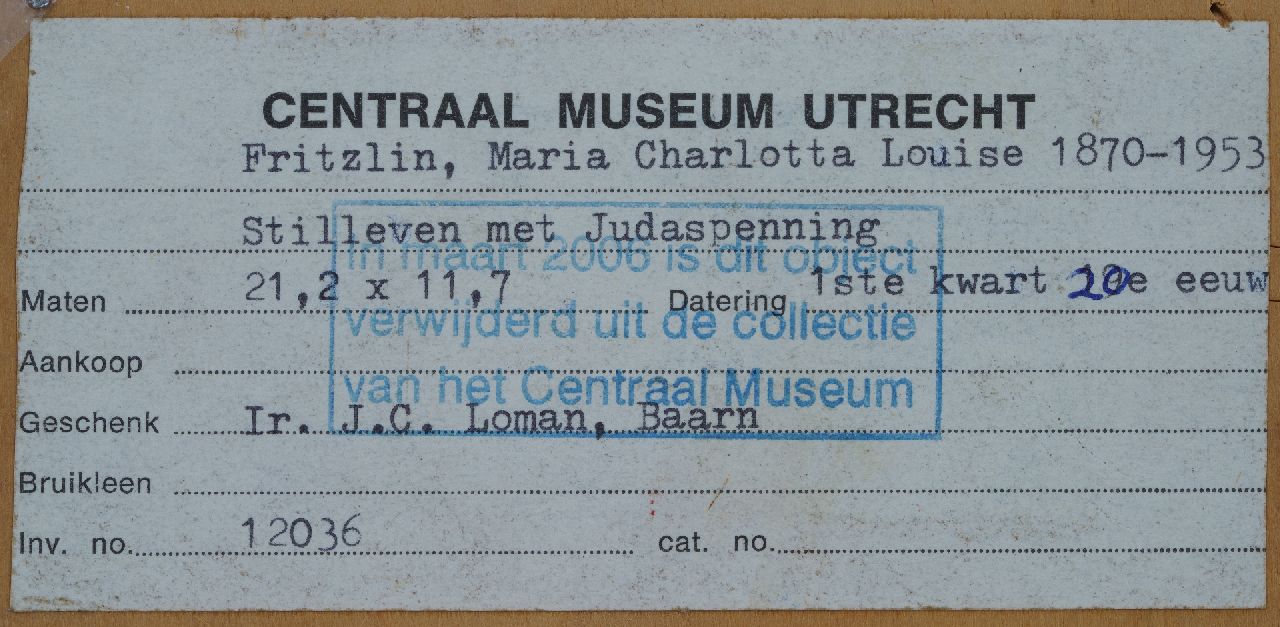 Louise Fritzlin kunstwerk • schilderij • voorheen te koop Stilleven met Judaspenning