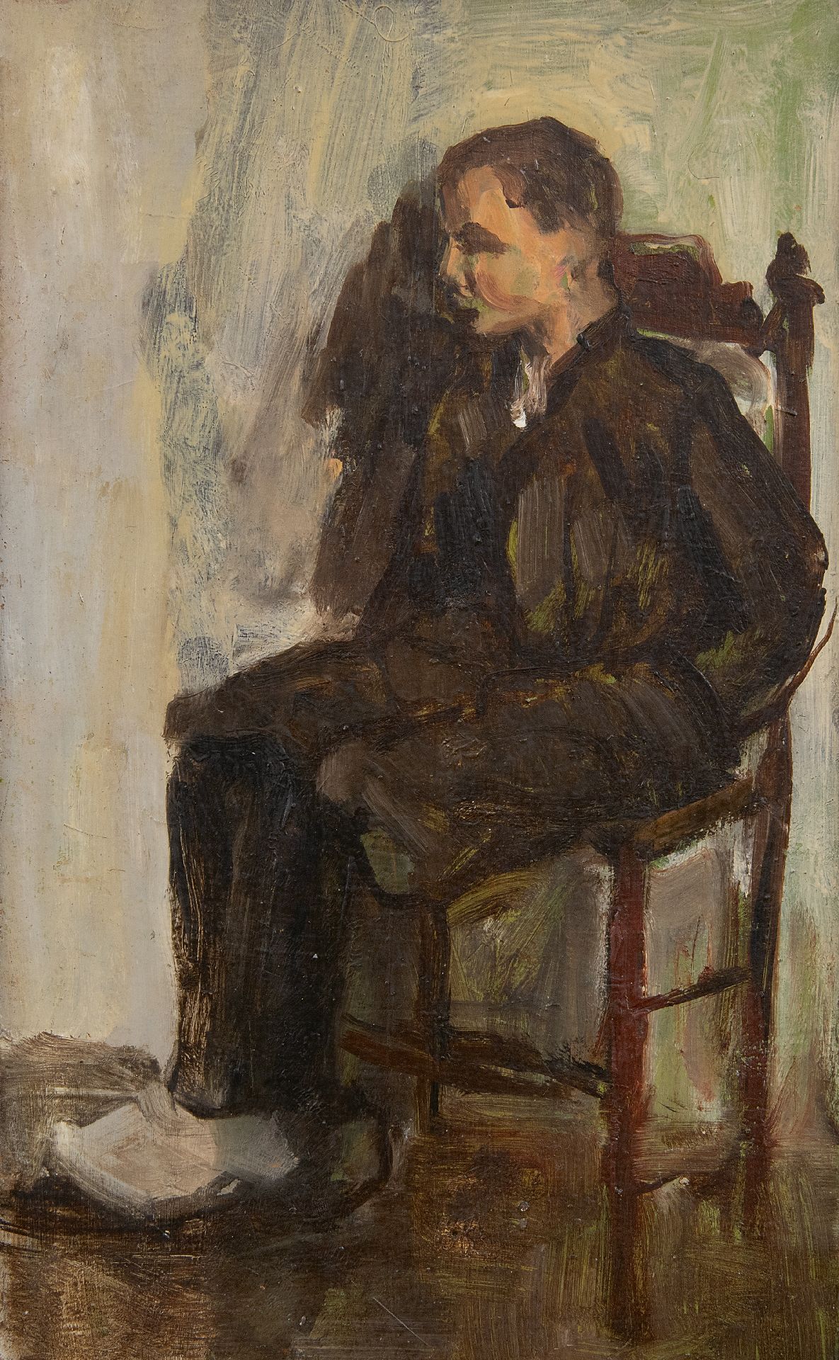 Fritzlin M.C.L.  | Maria Charlotta 'Louise' Fritzlin | Schilderijen te koop aangeboden | Zittende jongen, olieverf op board op paneel 24,8 x 15,3 cm, te dateren 1908