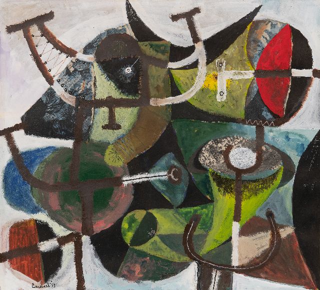 Lucebert was een experimenteel schilder-tekenaar-dichter en in die laatste hoedanigheid één van de hoofdfiguren van de CoBrA-beweging. Zijn werk wordt gekenmerkt door een grote vrijheid en spontaniteit. Hij schilderde wat er in hem opkwam, zonder zich te houden aan vaste motieven. Vanaf de jaren 50 bouwde hij zijn tekeningen en gouaches op uit stippels, lijnen en krassen, waar overheen de - bewust - onbeholpen vormen van lichamen van mensen en fantasiewezens werden geschilderd. Zijn sterk experimentele inslag bracht met zich mee dat Lucebert ook op veel andere gebieden actief was: hij fotografeerde, maakte keramiek, schreef toneelteksten en maakte monumentale wandschilderingen.
