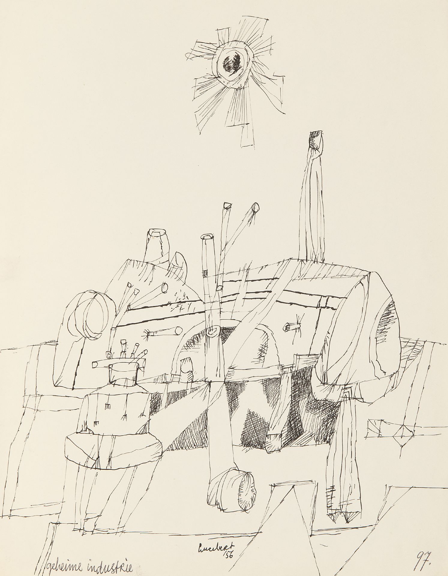 Lucebert kunstwerk • aquarel • tekening • te koop Geheime industrie