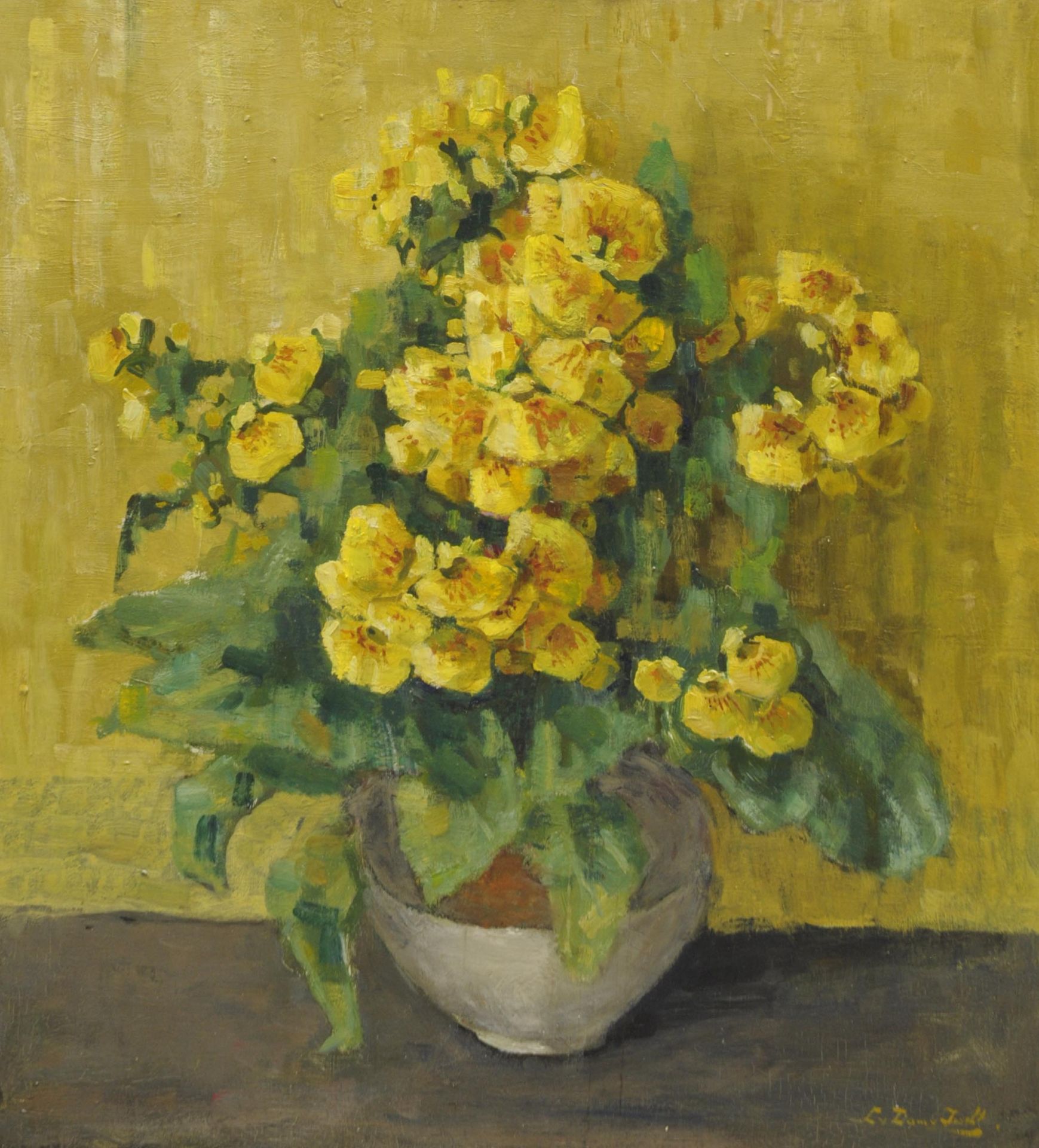 Lucie van Dam van Isselt kunstwerk • schilderij • voorheen te koop Aardewerken pot met pantoffelplant