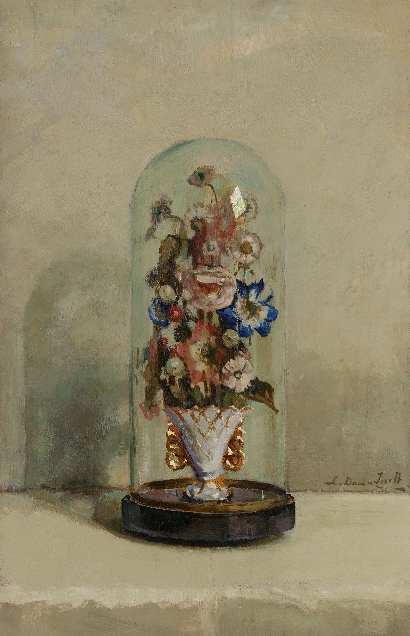 Lucie van Dam van Isselt kunstwerk • schilderij • voorheen te koop Bloemen onder glazen stolp