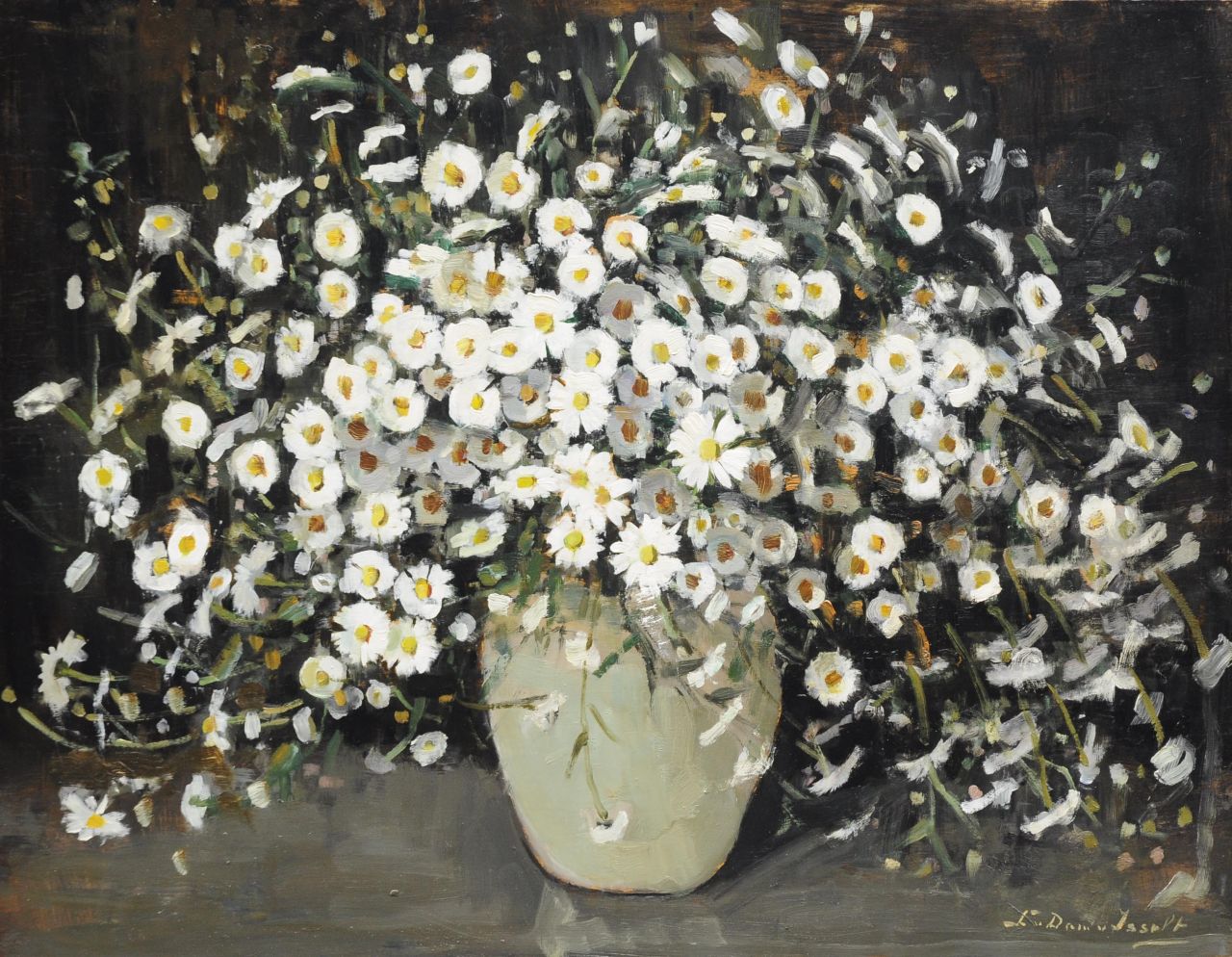 Lucie van Dam van Isselt kunstwerk • schilderij • voorheen te koop Margrieten in witte vaas