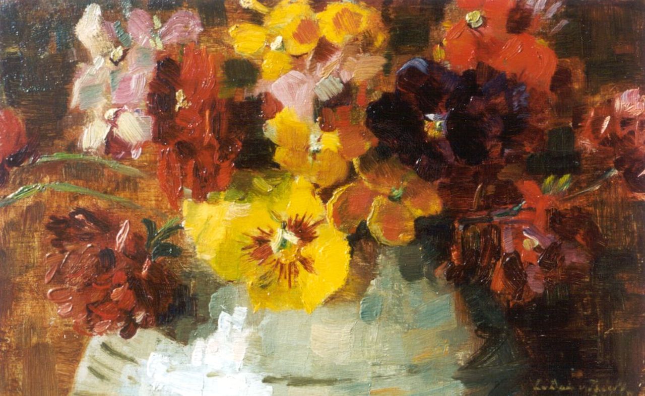 Lucie van Dam van Isselt kunstwerk • schilderij • voorheen te koop Stilleven met viooltjes