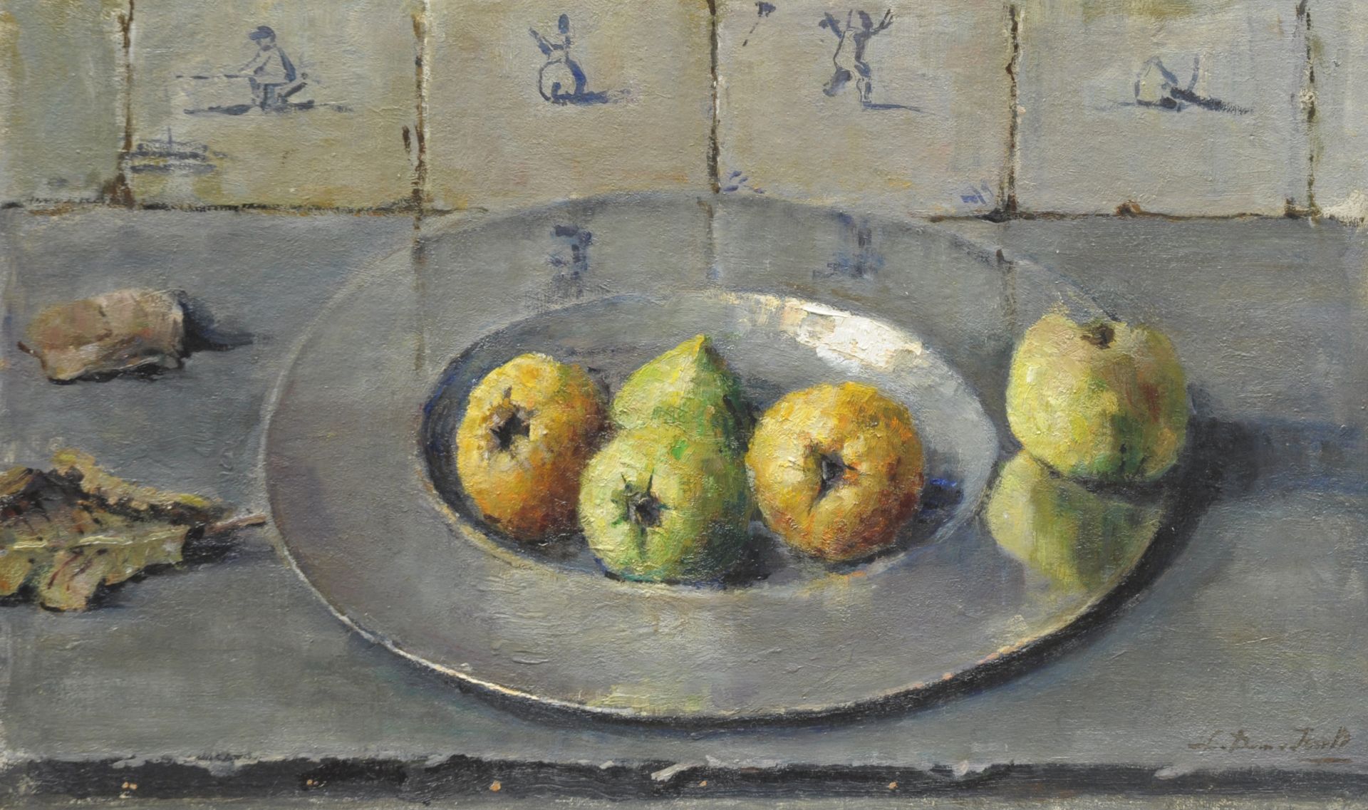 Lucie van Dam van Isselt kunstwerk • schilderij • voorheen te koop Tinnen schaal met appels