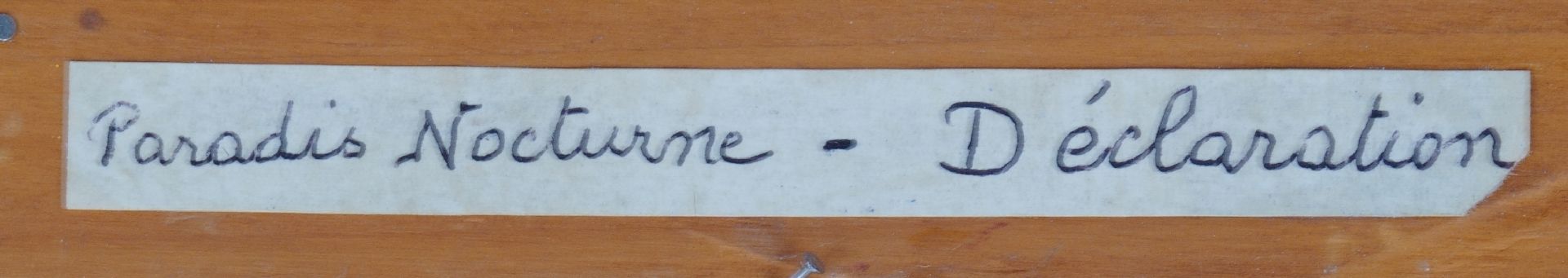 annotatie op spieraam: 'Paradis Nocturne - Déclaration'
