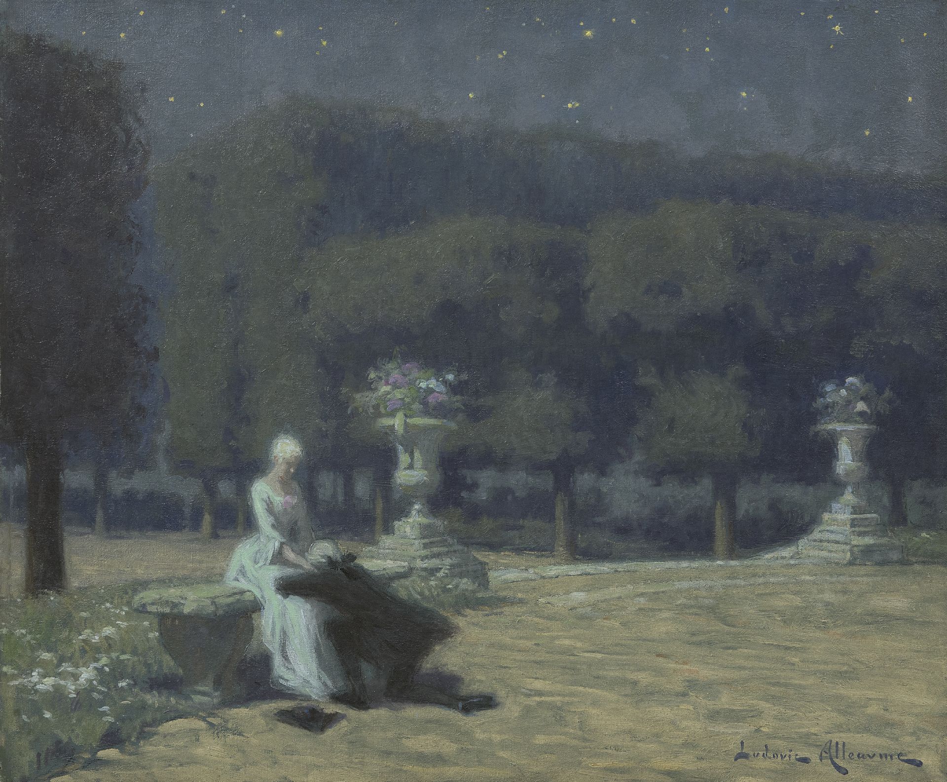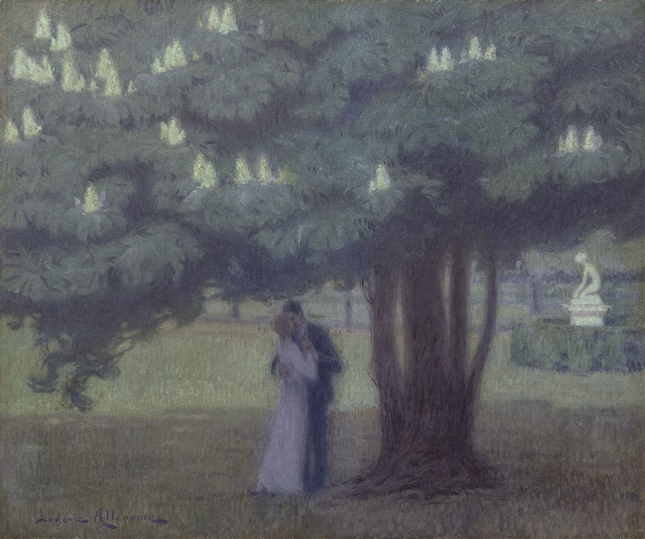 De schilder-lithograaf Ludovic Alleaume is een typische vertegenwoordiger van het artistieke fin de siècle in Parijs: het gedachtegoed van symbolisme, decadentie en Art Nouveau is in zijn werk terug te vinden. Omdat de kunstenaar werkelijkheid en fantasie vaak dooreen weeft weet hij met zijn (maan)landschappen en figuurstukken niet zelden een mystieke, soms sensuele sfeer op te roepen. Literatuur, mythologie en het bovennatuurlijke vormen daarbij bron van inspiratie. Alleaume werd opgeleid aan de École des Beaux-Arts in Parijs en exposeerde tussen 1883 en 1938 met veel succes op de Salon. Na 1894 werd hij eveneens beroemd als lithograaf. Ook realiseerde hij meerdere grote wand- en plafonddecoraties.