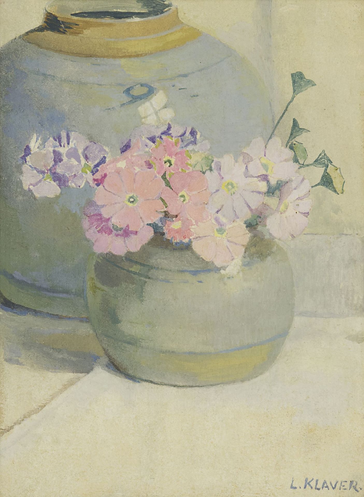 Luite Klaver kunstwerk • schilderij • voorheen te koop Bloemen in Keulse pot