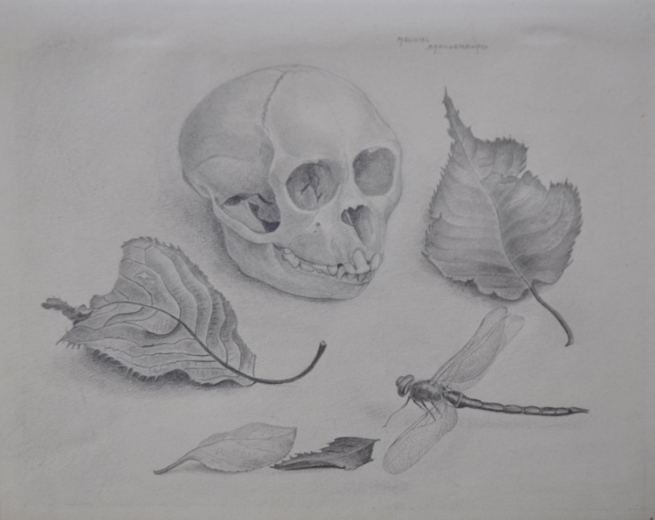 Machiel Brandenburg kunstwerk • aquarel • tekening • voorheen te koop Apenschedeltje