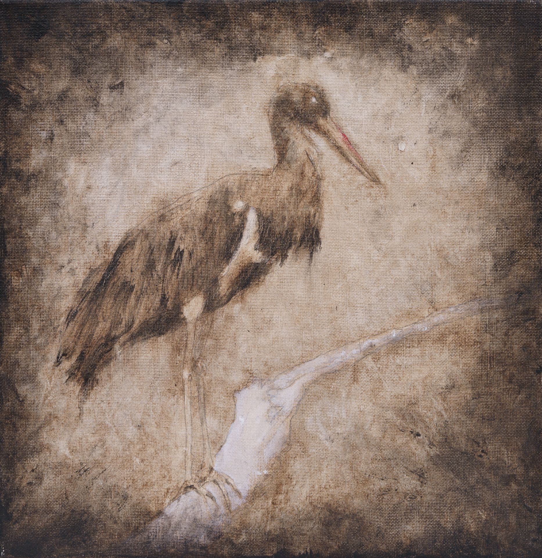 olieverf en acryl op doek 29,8 x 29,8 cm, gesigneerd op spieraam met initialen en gedateerd 2014