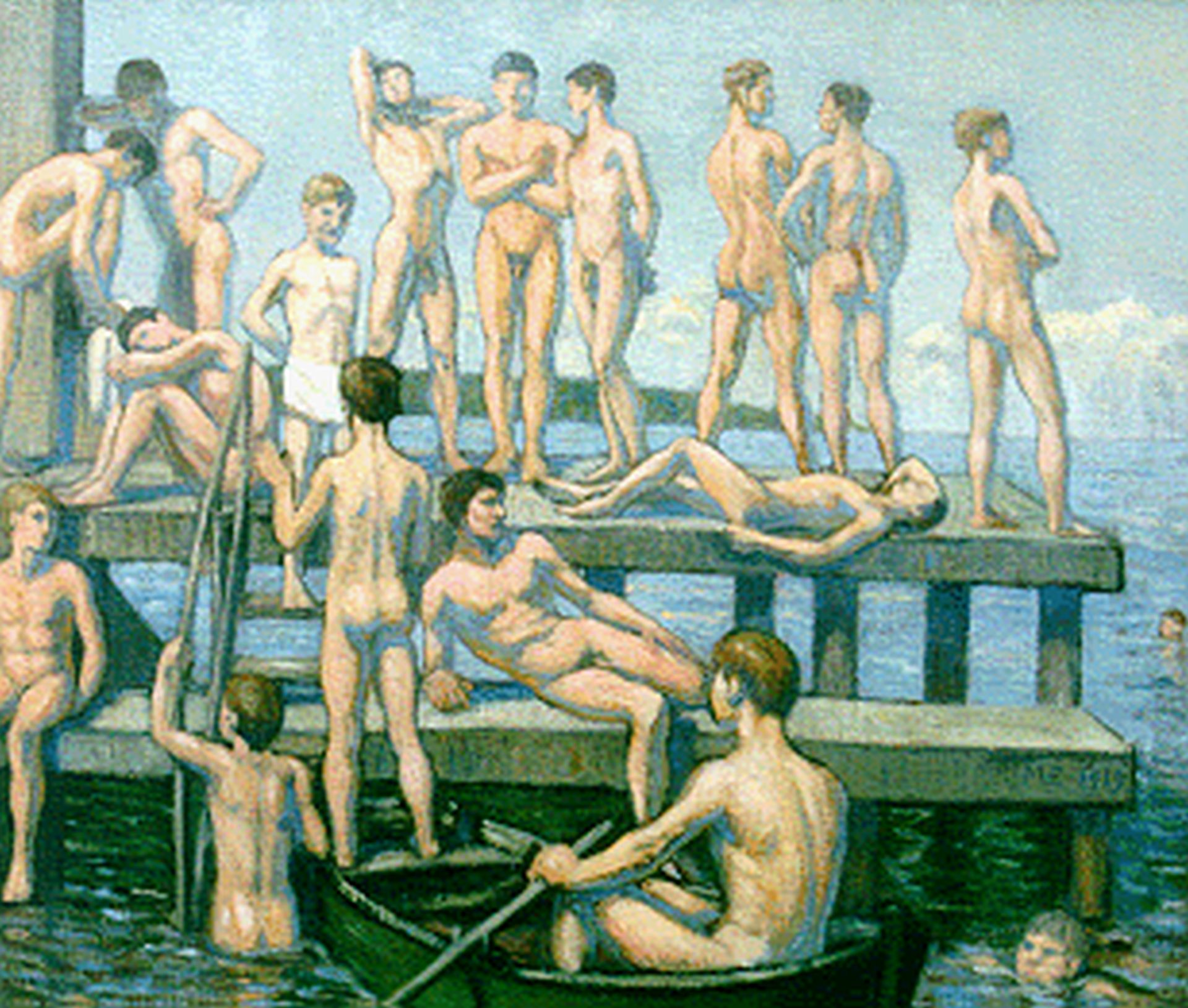 Malthe-Odin Engelsted kunstwerk • schilderij • voorheen te koop Badende jongens