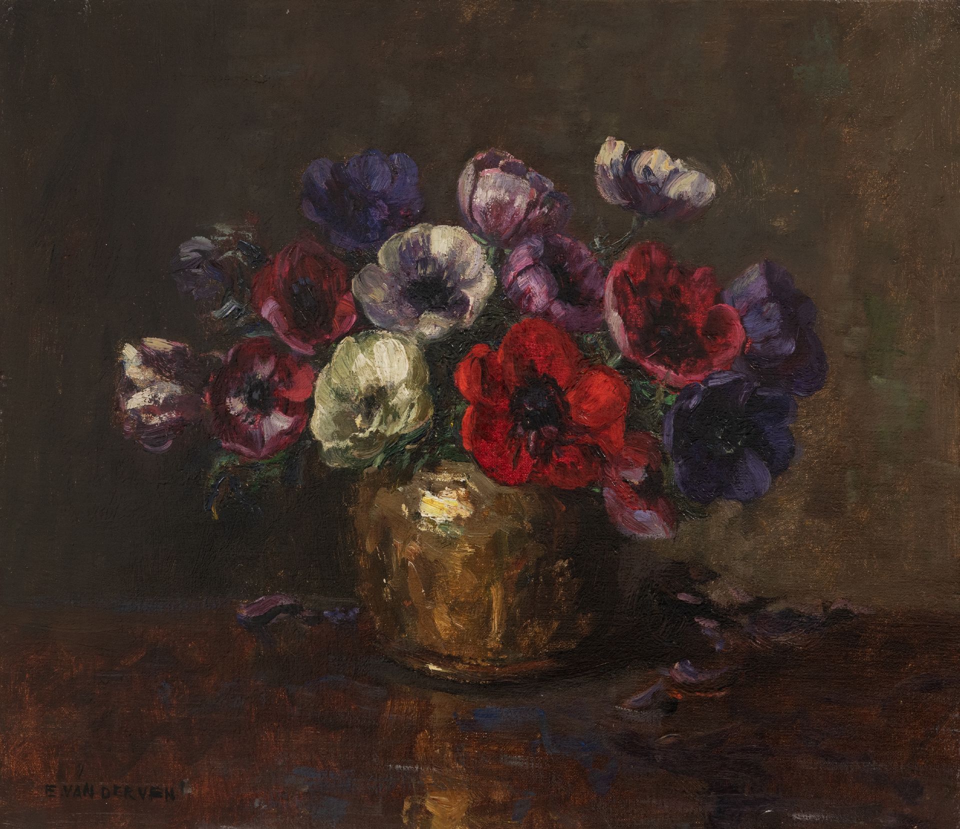 Manus van der Ven kunstwerk • schilderij • te koop Anemonen in een koperen pot