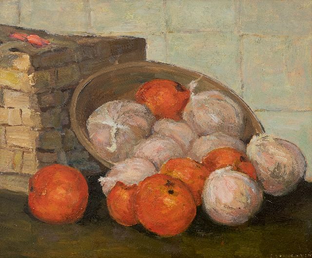 Manus van der Ven | Stilleven met mandarijnen, olieverf op board, 30,4 x 37,2 cm, gesigneerd r.o.
