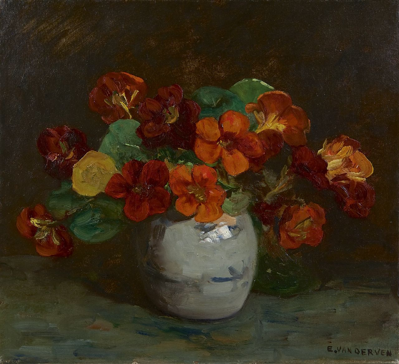 Manus van der Ven kunstwerk • schilderij • voorheen te koop Oost-Indische kers in Keuls potje
