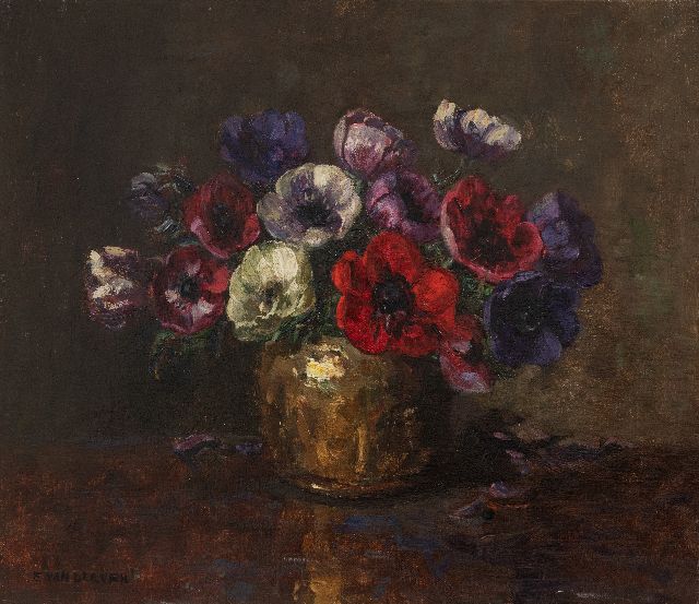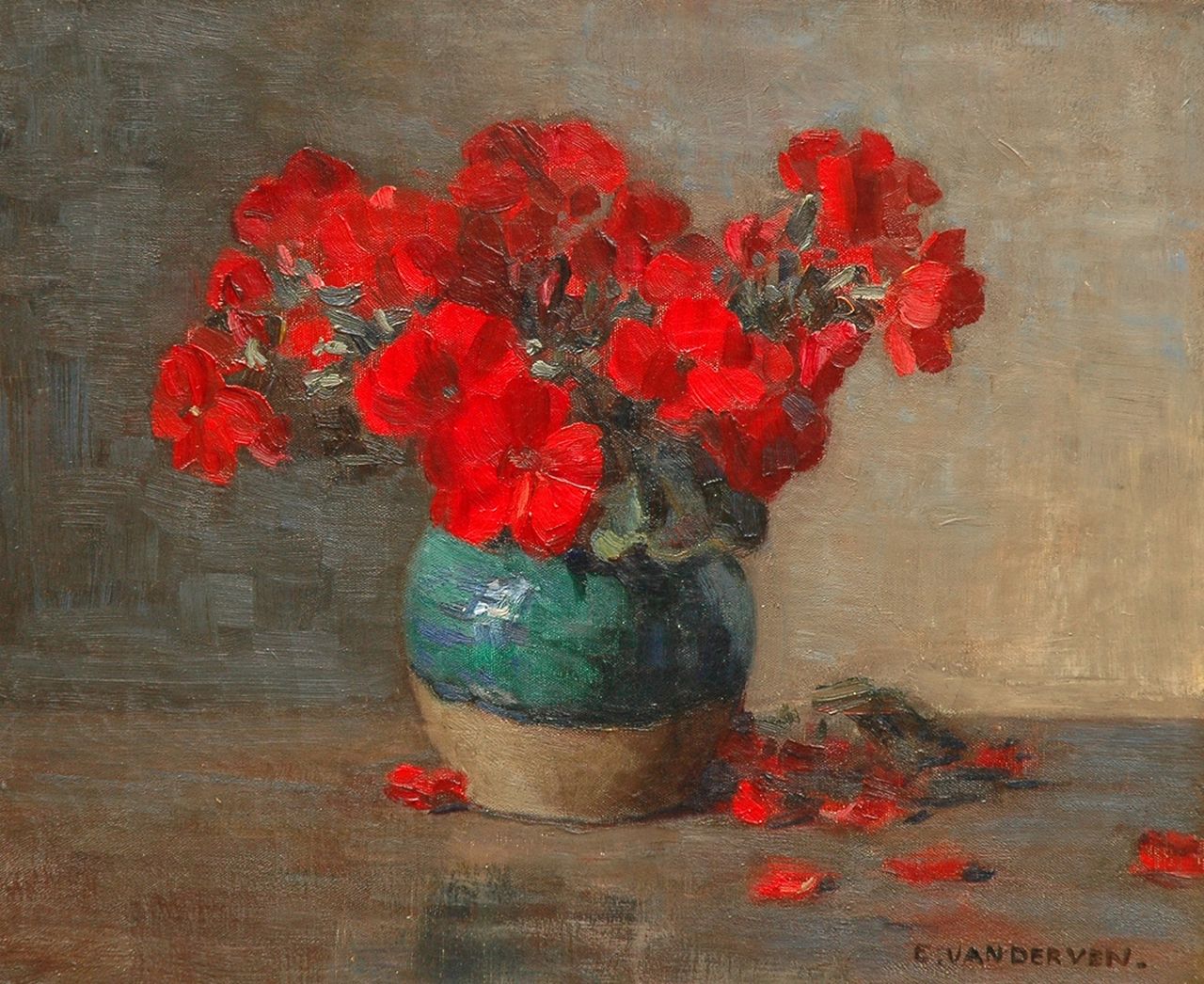 Manus van der Ven kunstwerk • schilderij • voorheen te koop Rode bloemen in gemberpot