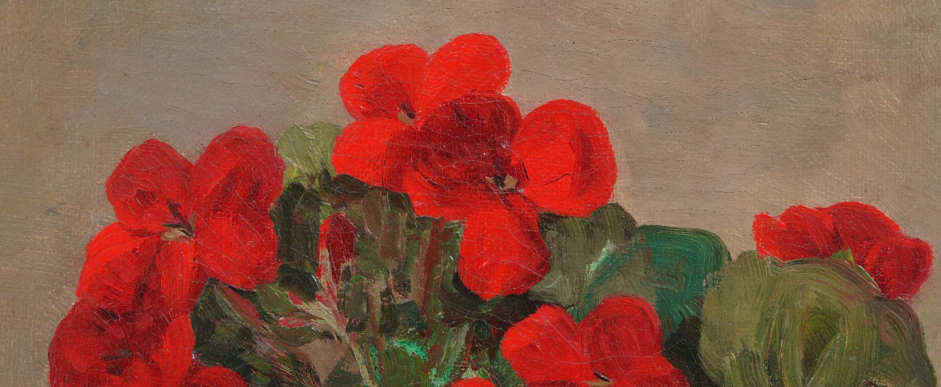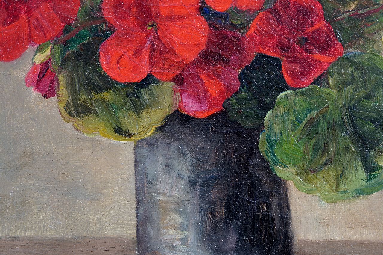 Manus van der Ven kunstwerk • schilderij • te koop Tinnen vaas met geraniumtakken