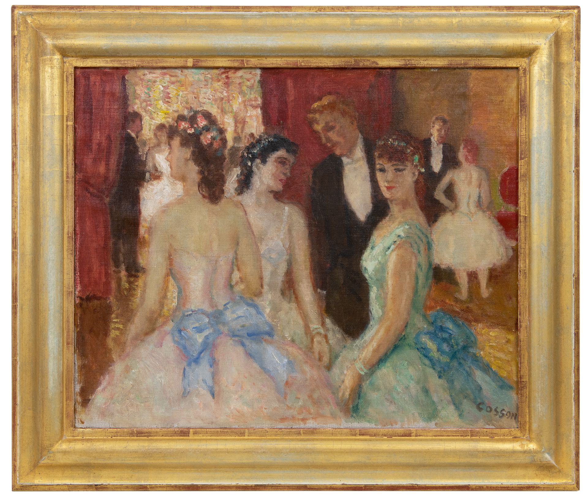 De Franse schilder Marcel Cosson werd vooral bekend om zijn voorstellingen van danshuizen, restaurants en kleedkamers van revue- en balletdanseressen. Hoewel zijn oeuvre grotendeels tot stand kwam in de 20e eeuw, sluiten zijn schilderijen wat onderwerp betreft aan bij het Franse impressionisme. Zijn stijl is echter vrijer en losser en meer gericht op het weergeven van sfeer dan op het schilderen van licht.