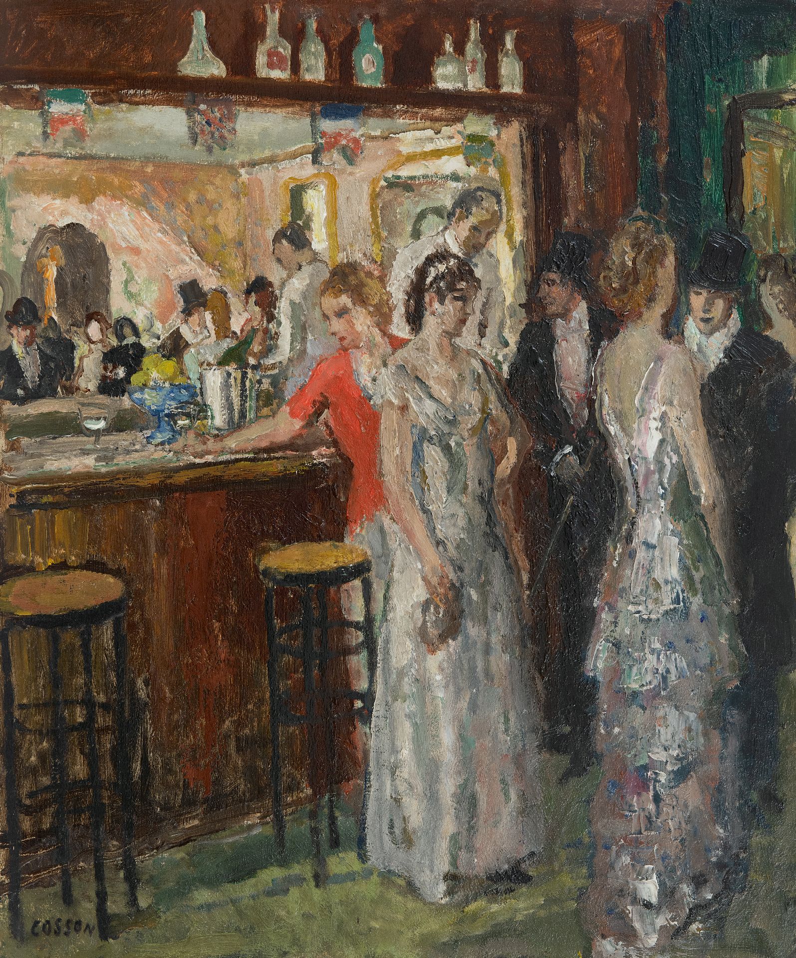 De Franse schilder Marcel Cosson werd vooral bekend om zijn voorstellingen van danshuizen, restaurants en kleedkamers van revue- en balletdanseressen. Hoewel zijn oeuvre grotendeels tot stand kwam in de 20e eeuw, sluiten zijn schilderijen wat onderwerp betreft aan bij het Franse impressionisme. Zijn stijl is echter vrijer en losser en meer gericht op het weergeven van sfeer dan op het schilderen van licht.