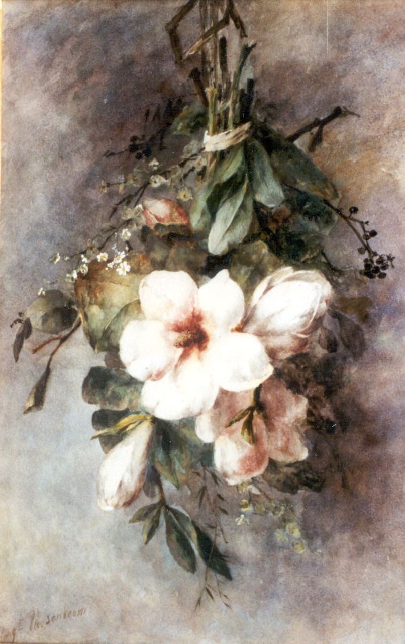 Margaretha Roosenboom kunstwerk • aquarel • tekening • voorheen te koop Hangend boeket met magnolia's