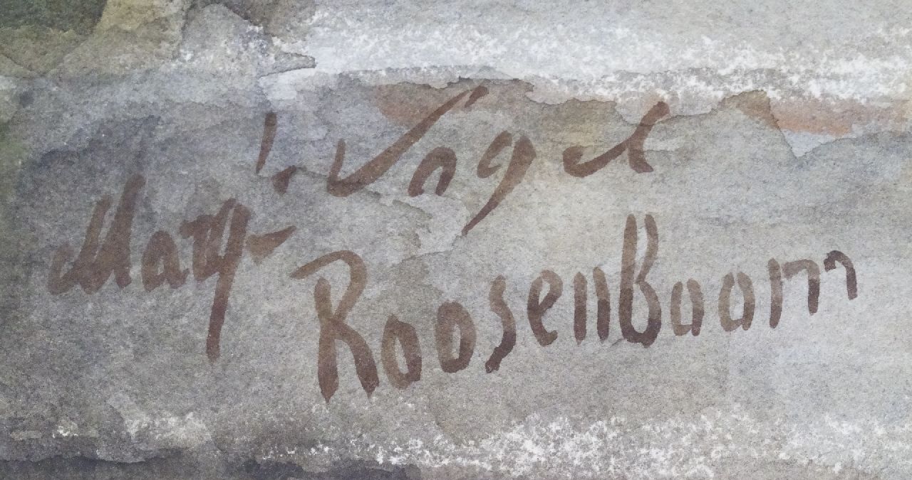 De eerste schilderlessen kreeg Margaretha Roosenboom van haar vader, N.J. Roosenboom, terwijl grootvader Andreas Schelfhout haar de aquareltechniek bijbracht. Het liefst schilderde Margaretha bloemen in hun meest natuurlijke staat, geschikt in vazen of als boeket los neergelegd op de bosgrond. Dat betekent dat in haar stillevens ook wilde en uitgebloeide bloemen voorkomen. Hiermee brak zij bewust met de traditie van het 18e-eeuwse, zorgvuldig geschikte pronkstilleven. Eén bloemsoort - dikwijls rozen - vormt vaak het hoofdmotief van haar schilderijen en aquarellen. Over haar warme tonen en specifieke kleurgebruik schreef een tijdgenoot ‘Vermeer had zijn eigen blauw (…) Rembrandt zijn gulden kleurengamma, Margaretha Roosenboom haar, als roze paarlen glanzende nuanceringen’. Margaretha Roosenboom trouwde in 1892 te Voorburg met de kunstschilder Johannes Gijsbert Vogel.