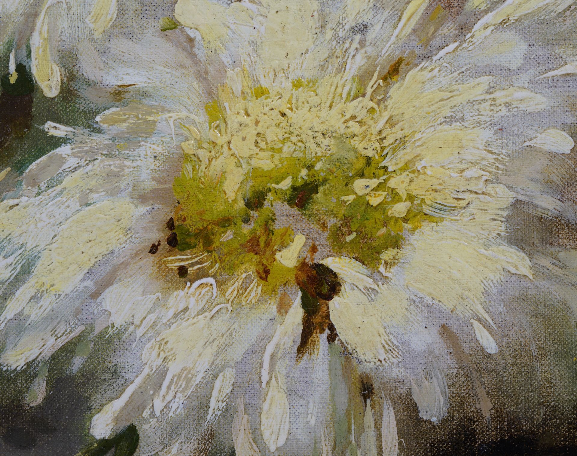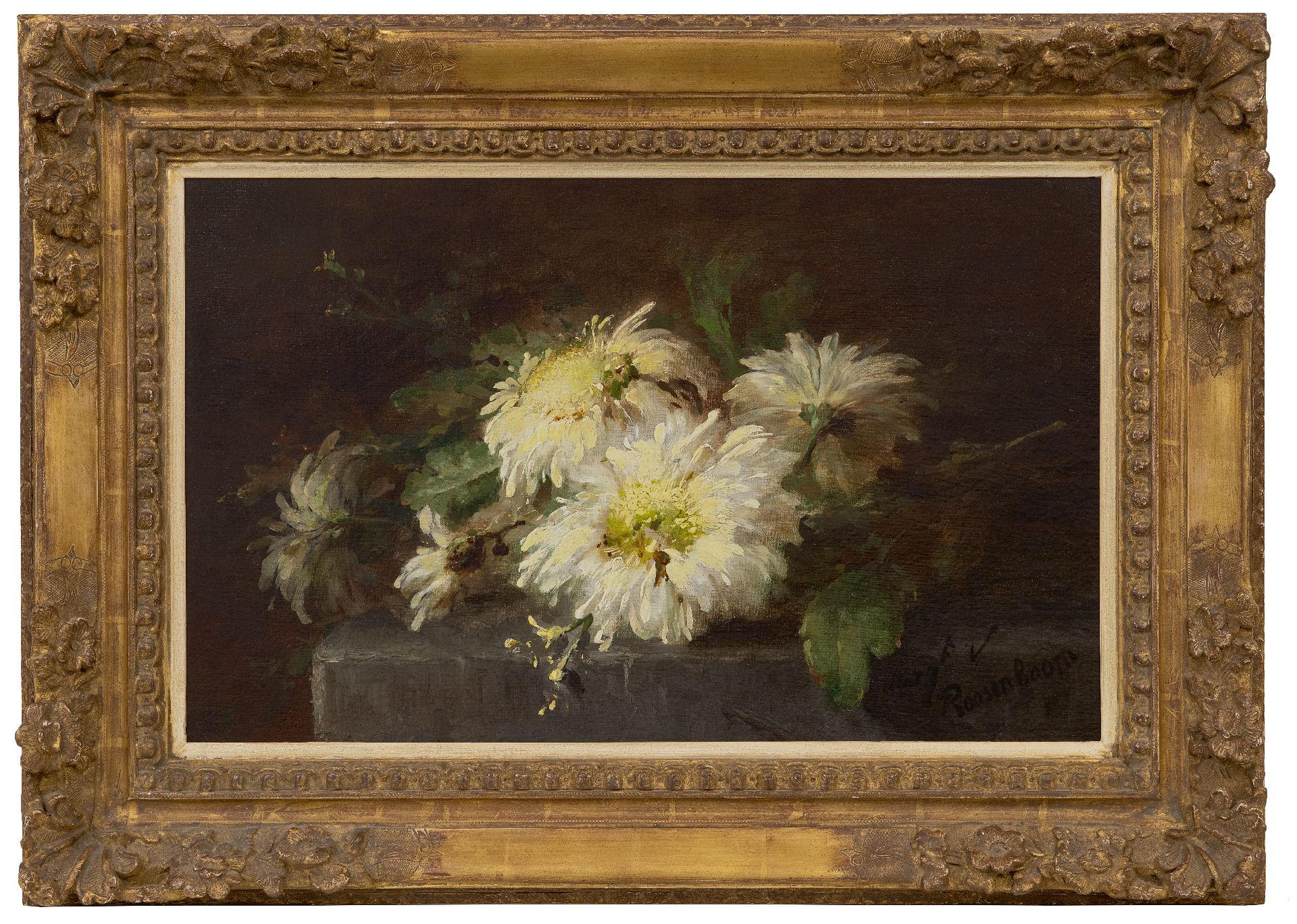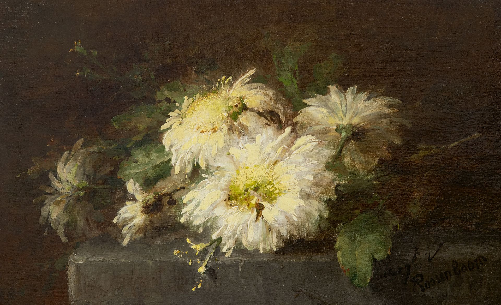 Margaretha Roosenboom kunstwerk • schilderij • te koop Chrysanten op een stenen plint