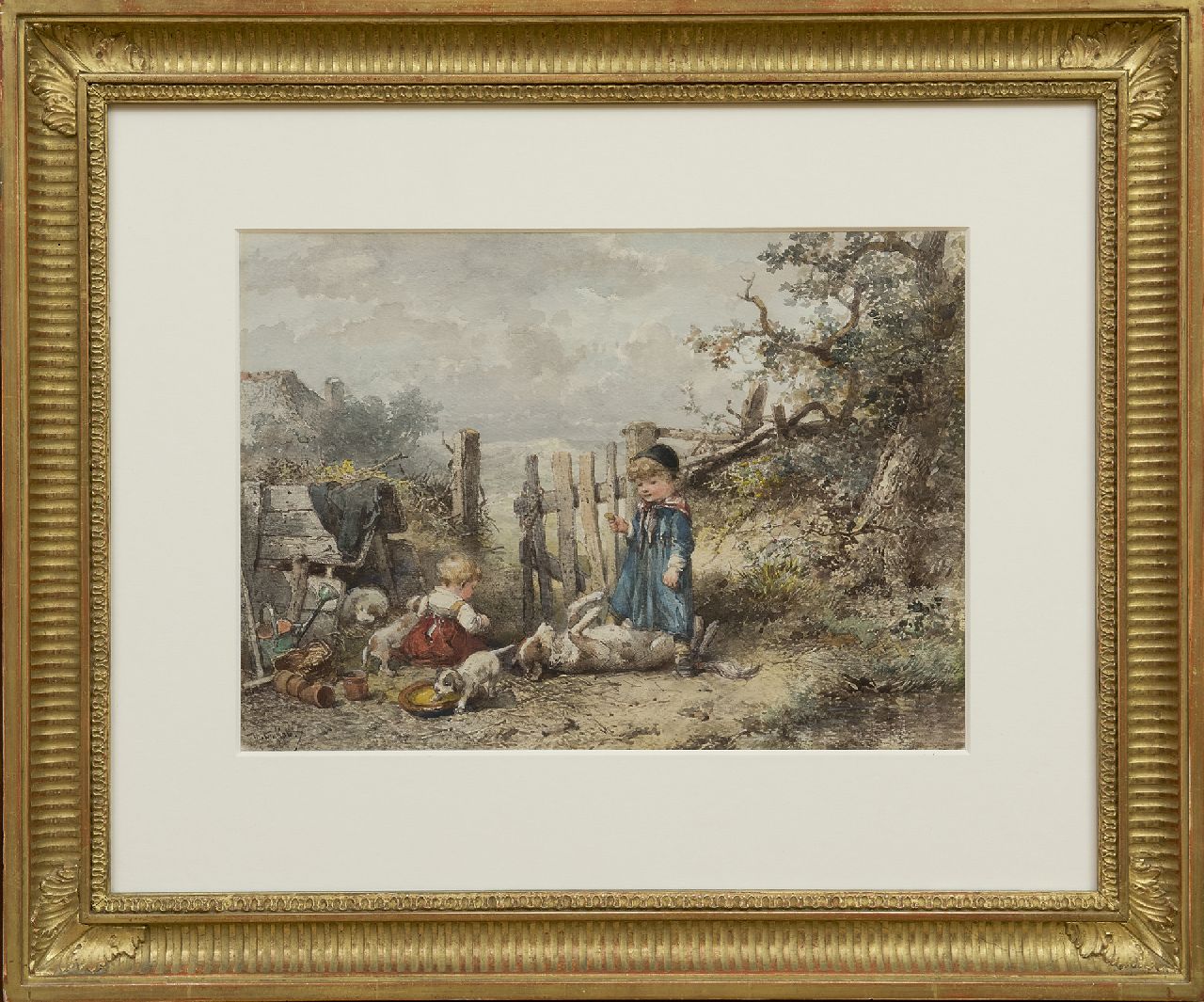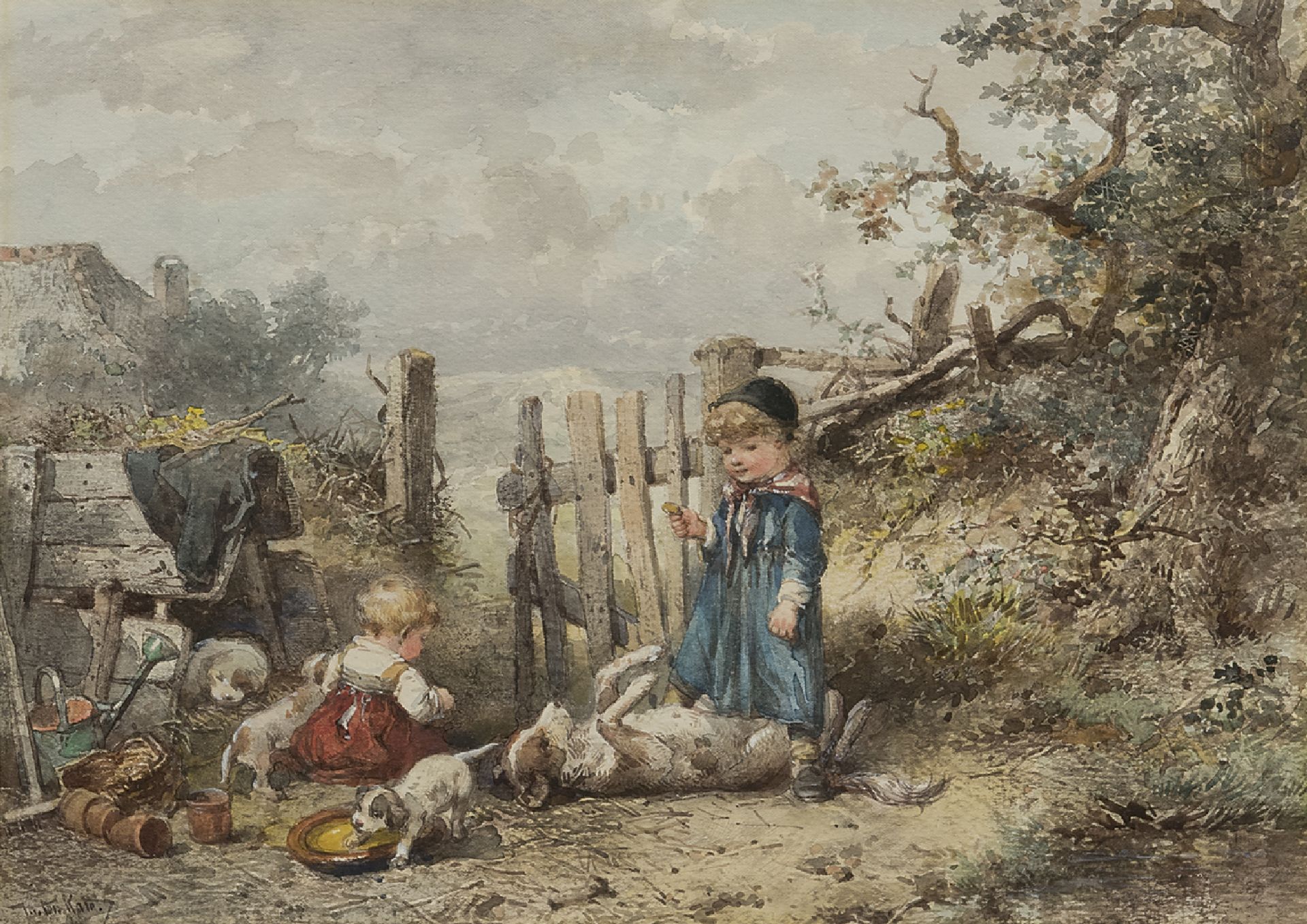 Mari ten Kate kunstwerk • aquarel • tekening • te koop Spelen met de honden