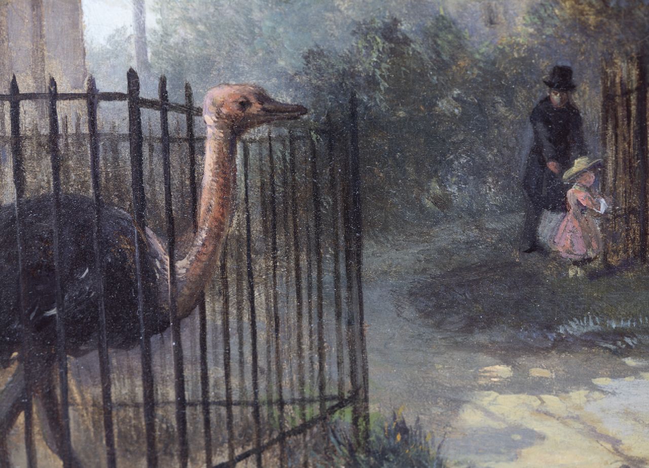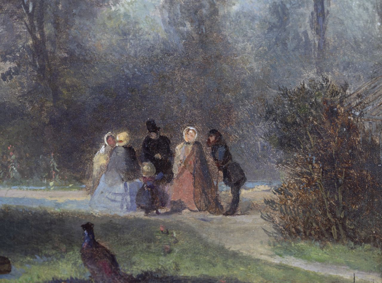 annotatie 'Natura' en met verso gedateerde authenticiteitsverklaring van de schilder op etiket: 'Les visiteurs du Jardin Zoologique d'Amsterdam […] Septembre 1859, peint en 1860 par ten Kate'
