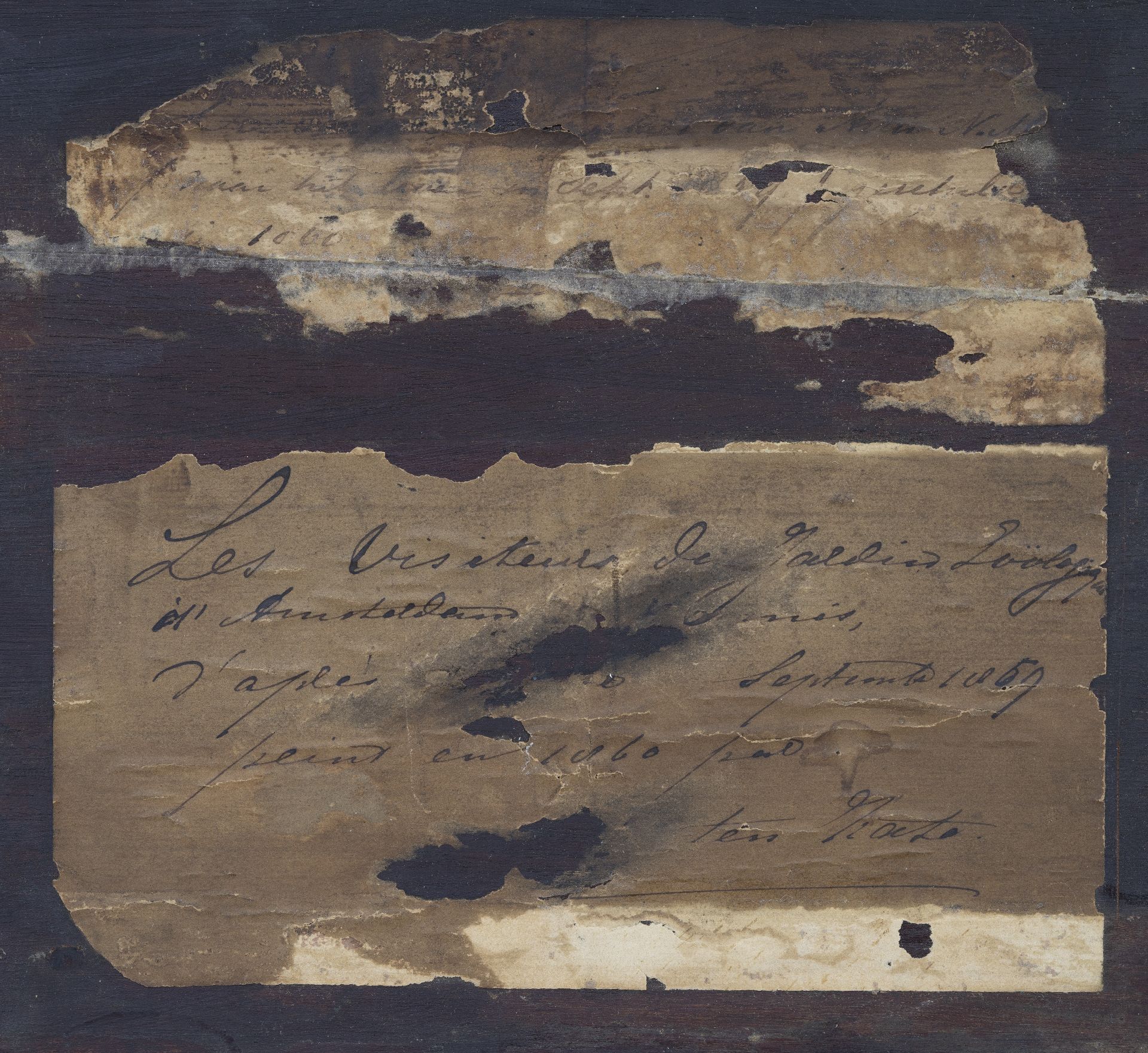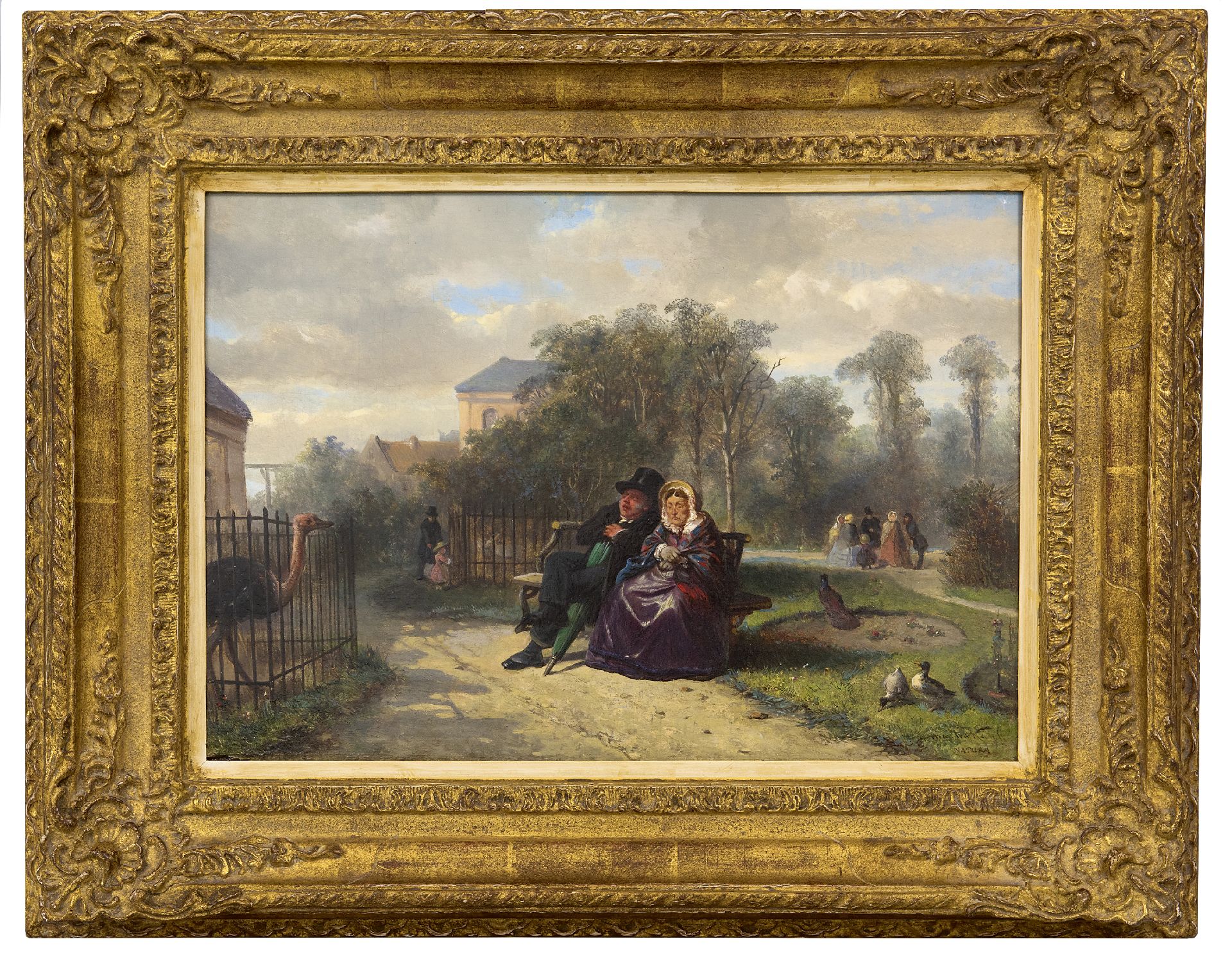 annotatie 'Natura' en met verso gedateerde authenticiteitsverklaring van de schilder op etiket: 'Les visiteurs du Jardin Zoologique d'Amsterdam […] Septembre 1859, peint en 1860 par ten Kate'