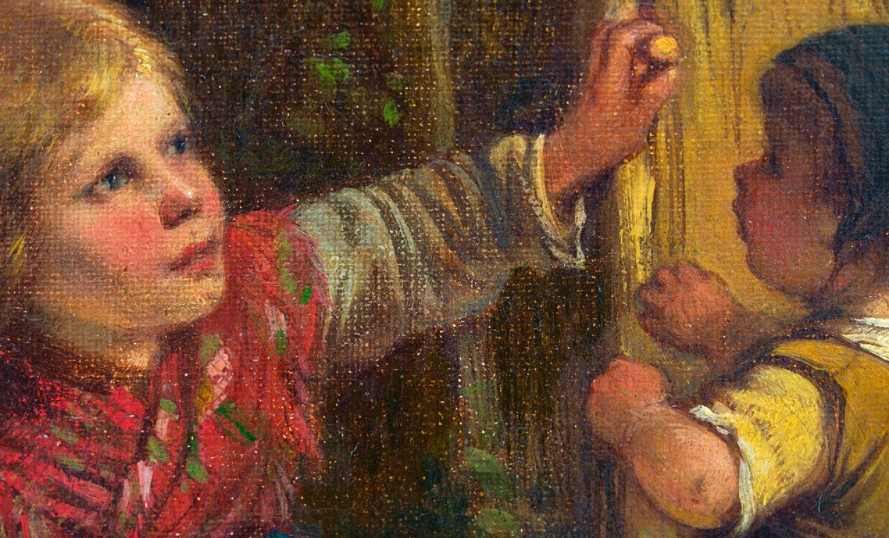 Mari ten Kate | De kleine appeldiefjes, olieverf op paneel, 30,6 x 44,0 cm, gesigneerd r.o.
