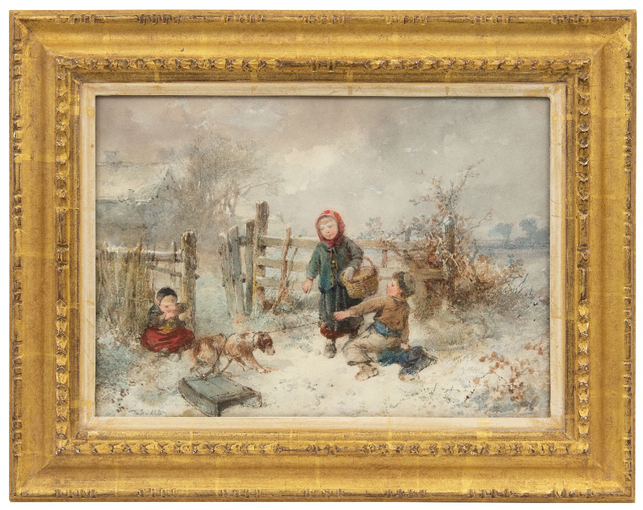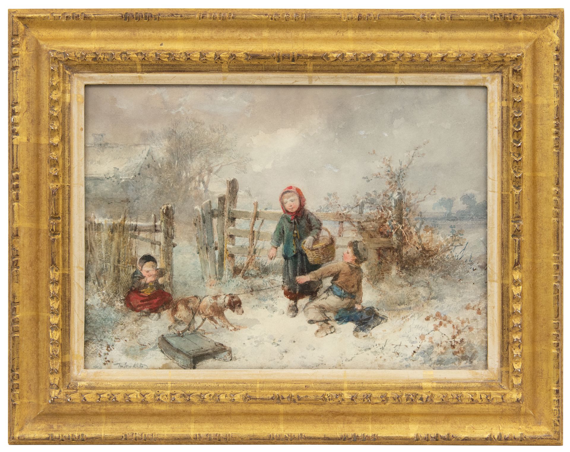 Mari ten Kate | Spelende kinderen op het ijs, aquarel op papier, 25,4 x 35,1 cm, gesigneerd l.o. (met resten van signatuur)