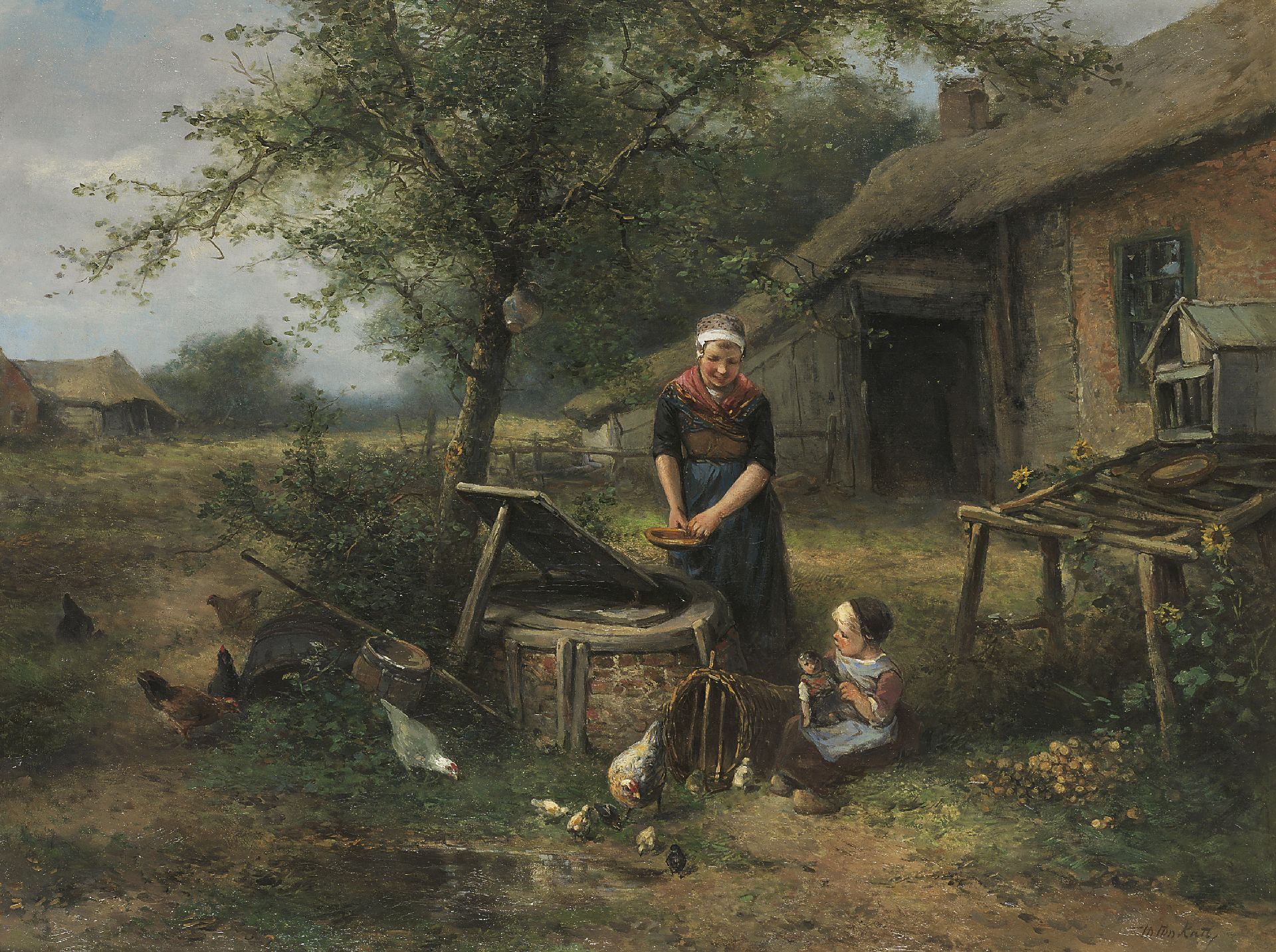 Mari ten Kate kunstwerk • schilderij • voorheen te koop Moeder en dochter bij de waterput