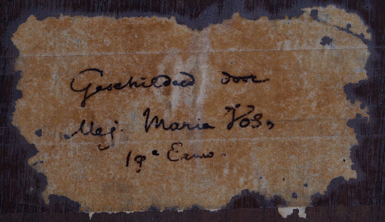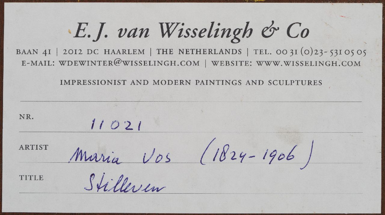 Maria Vos schilderde schitterende stillevens, vaak met groente, fruit en vis. In compositie en lichtval doen ze denken aan de 17e-eeuwse Hollandse pronkstillevens. Knap was de manier waarop ze de verschillende materialen kon weergeven: blinkend koper, glanzende uien en het zilveren vel van vis. In 1854 vestigde zij zich samen met de stillevenschilderes Adriana Haanen in Oosterbeek, waar ze vele schetsen, tekeningen en aquarellen van het Veluwse landschap maakte. De schilderes wordt daarom wel tot de Oosterbeekse School gerekend. Ook maakte zij studiereizen langs de Rijn en naar België en Parijs.