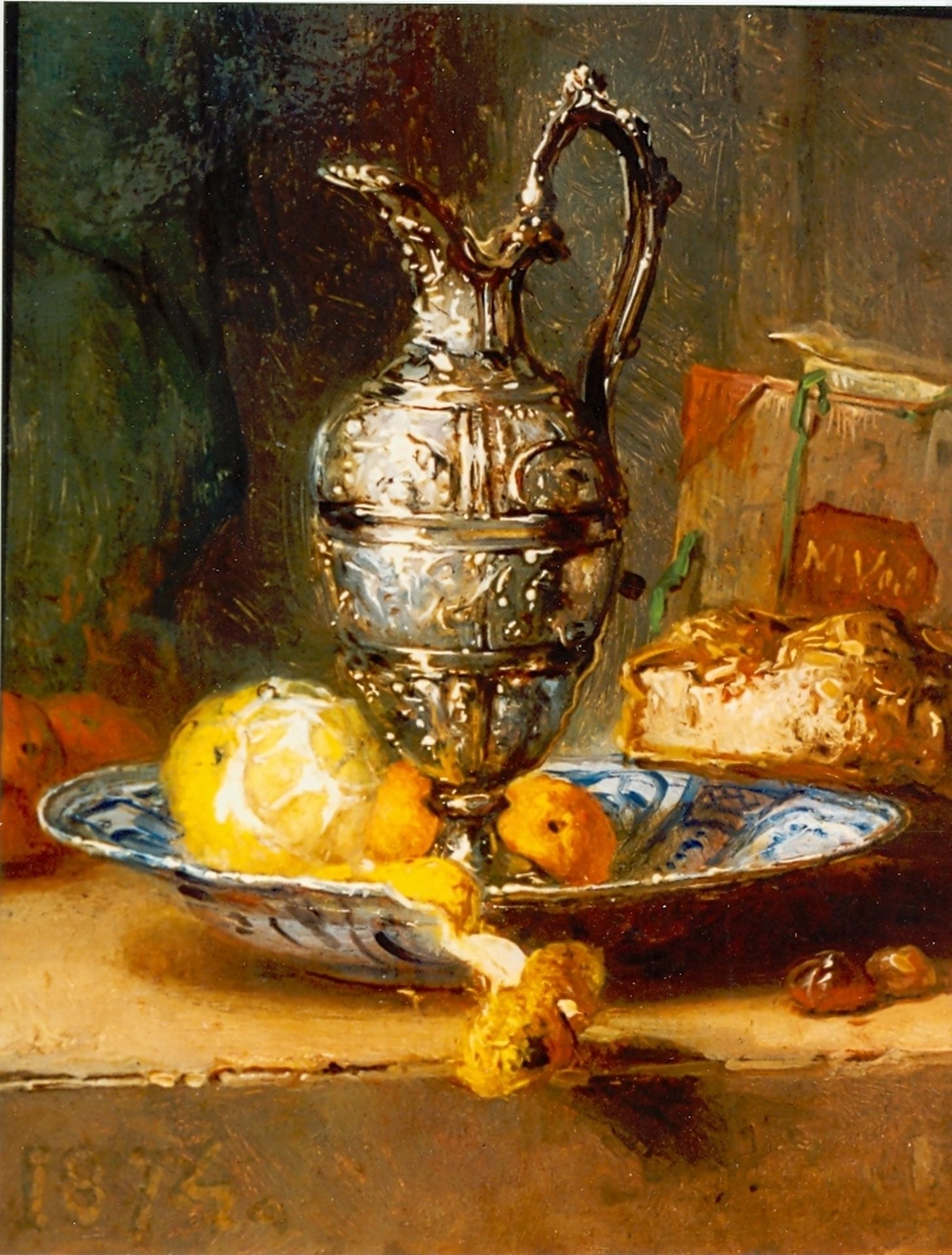 Maria Vos kunstwerk • schilderij • voorheen te koop Stilleven met zilveren vaas