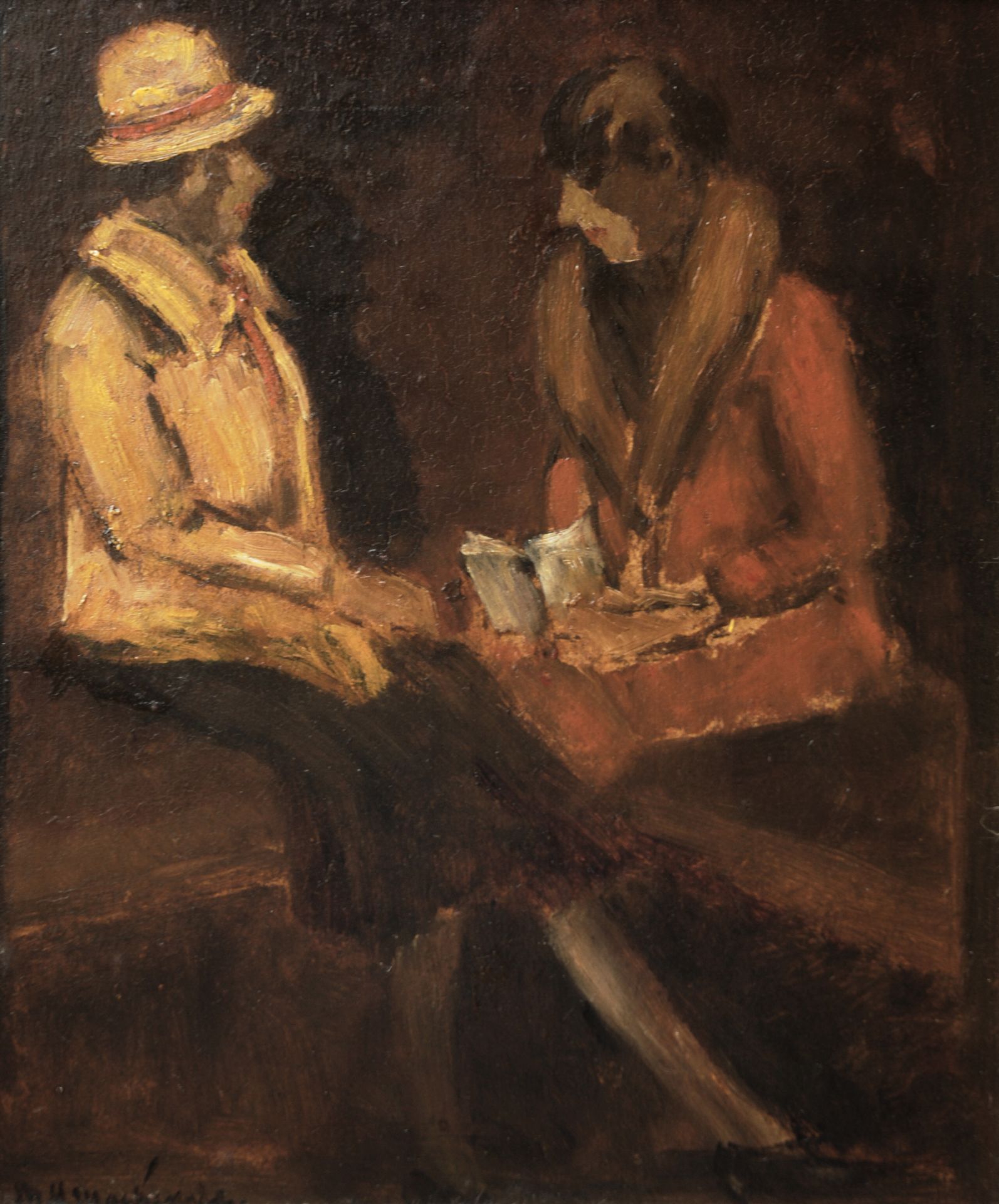 Marie Henri Mackenzie kunstwerk • schilderij • voorheen te koop Twee vrouwen in gesprek