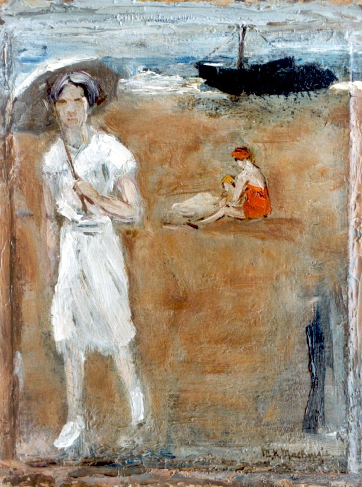 Marie Henri Mackenzie kunstwerk • schilderij • voorheen te koop Twee vrouwen op het strand