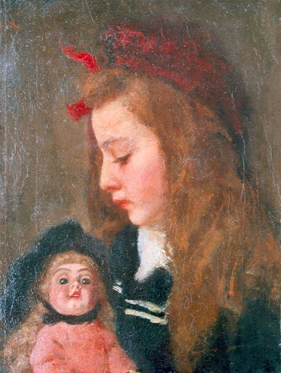 Marie Wandscheer kunstwerk • schilderij • voorheen te koop Henriëtte Thueré met pop