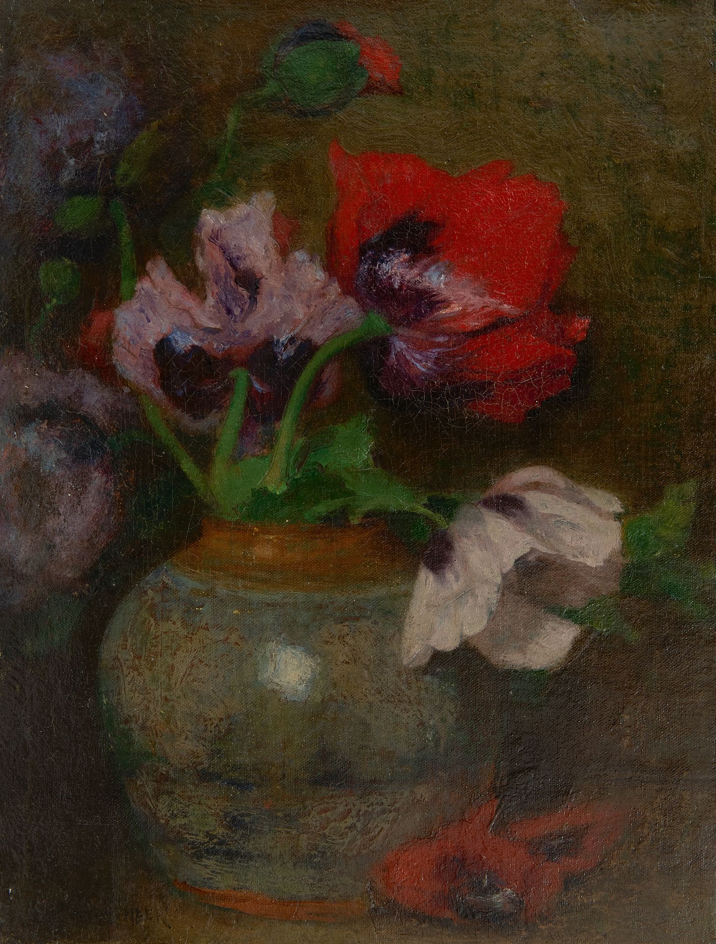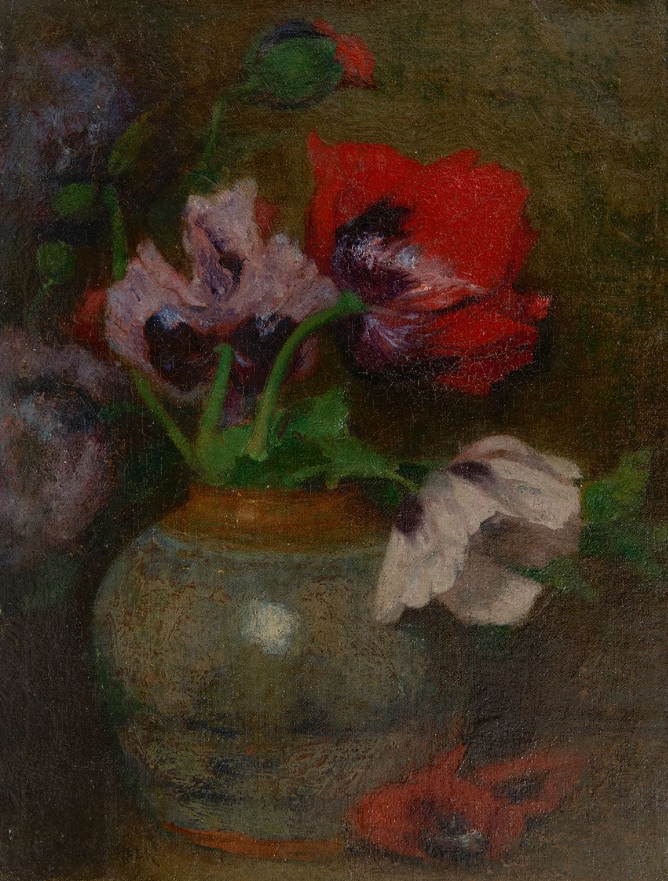 Marie Wandscheer kunstwerk • schilderij • te koop Klaprozen in gemberpot