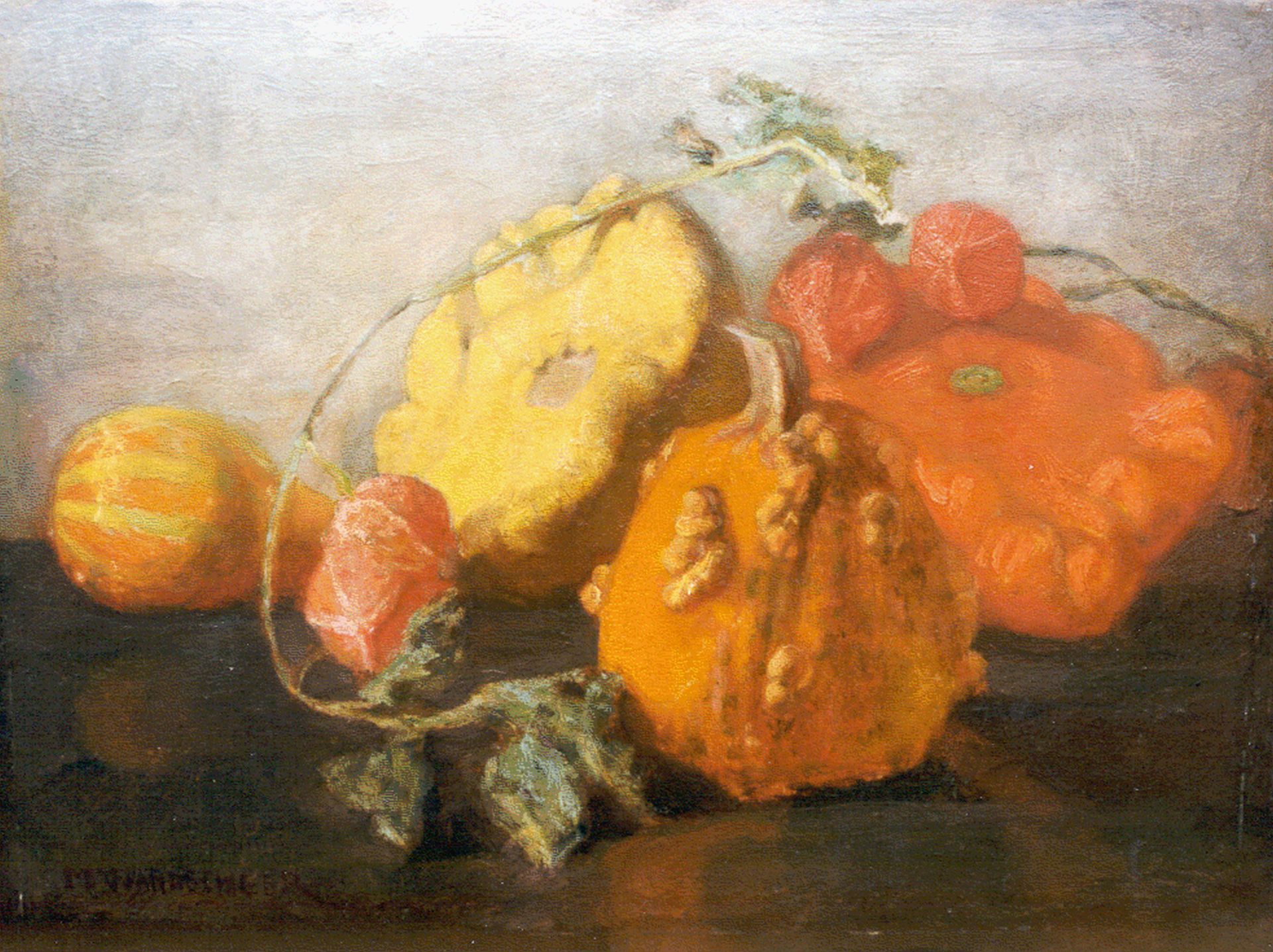 Marie Wandscheer kunstwerk • schilderij • voorheen te koop Stilleven met kalebassen