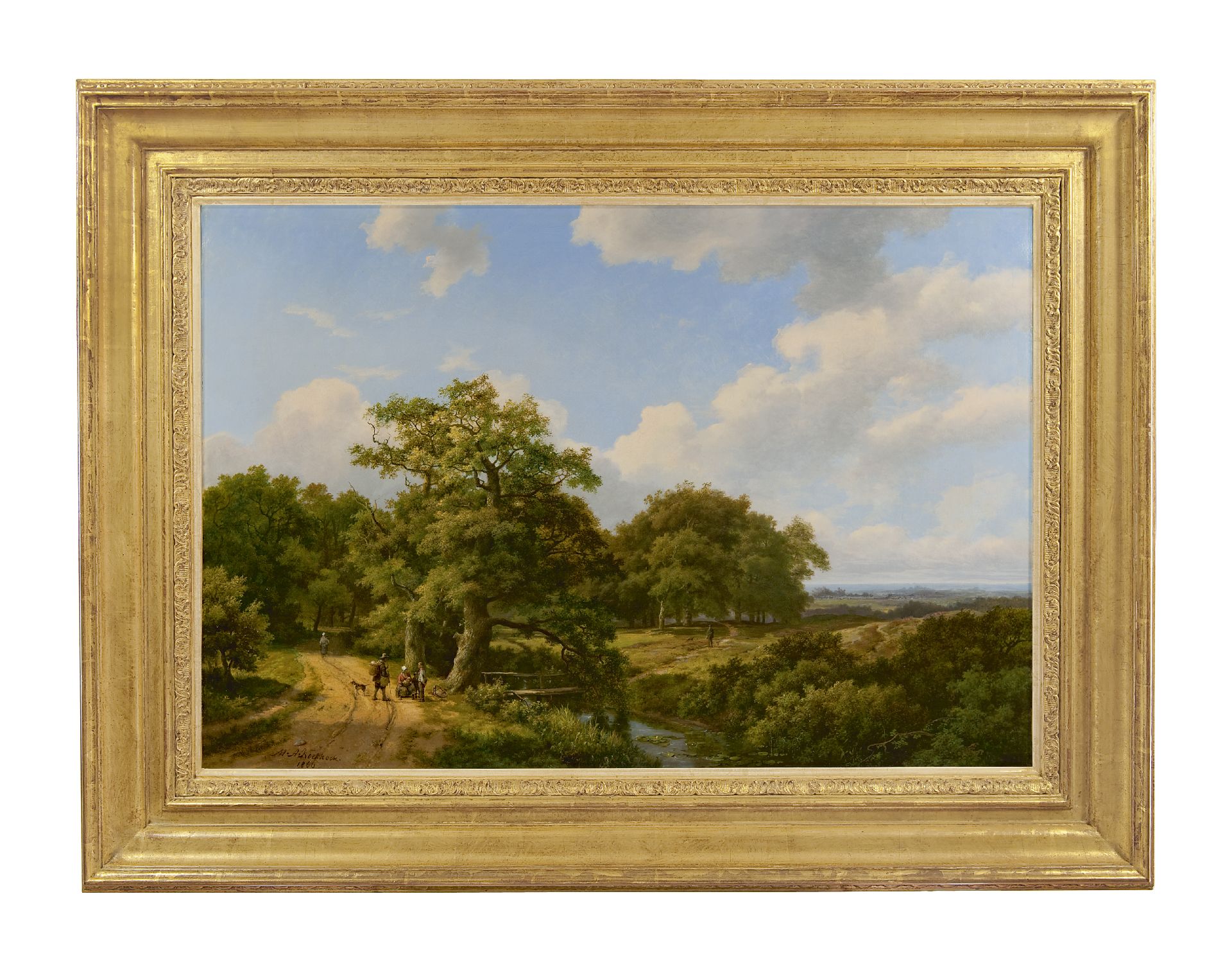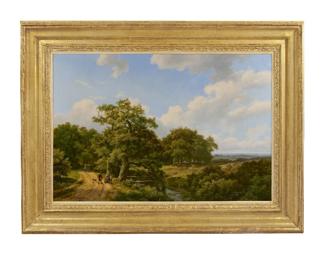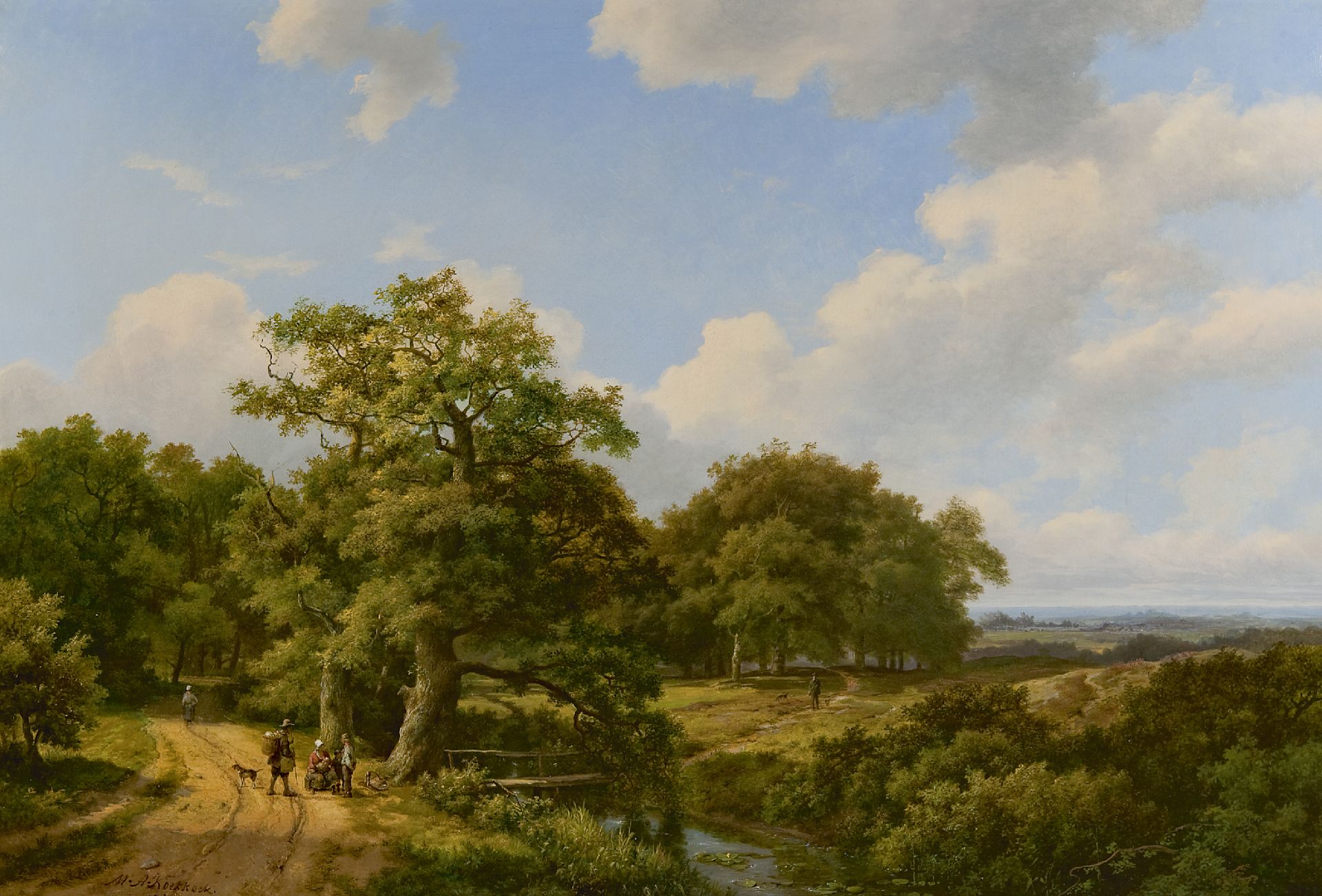 Marinus Adrianus Koekkoek I & Hermanus Koekkoek sr. kunstwerk • schilderij • voorheen te koop Landvolk op een pad langs de bosrand