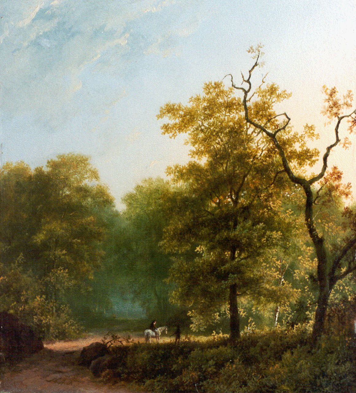 Marinus Adrianus Koekkoek I kunstwerk • schilderij • voorheen te koop Bosgezicht met ruiter en wandelaar