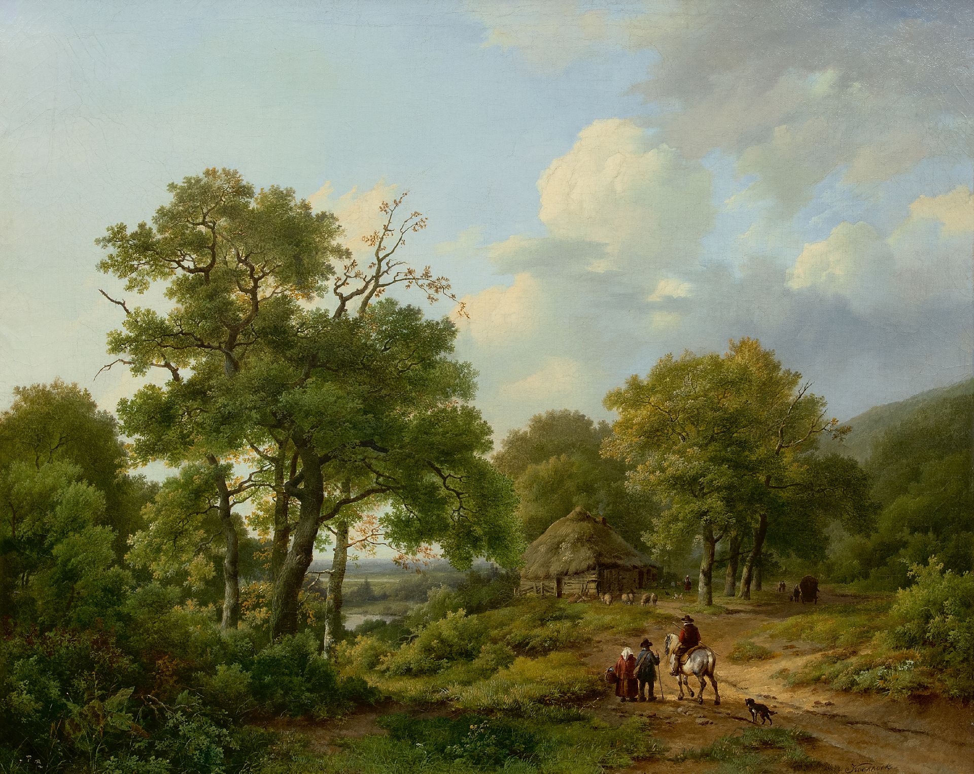 Marinus Adrianus Koekkoek I kunstwerk • schilderij • voorheen te koop Boslandschap met landvolk en ruiter