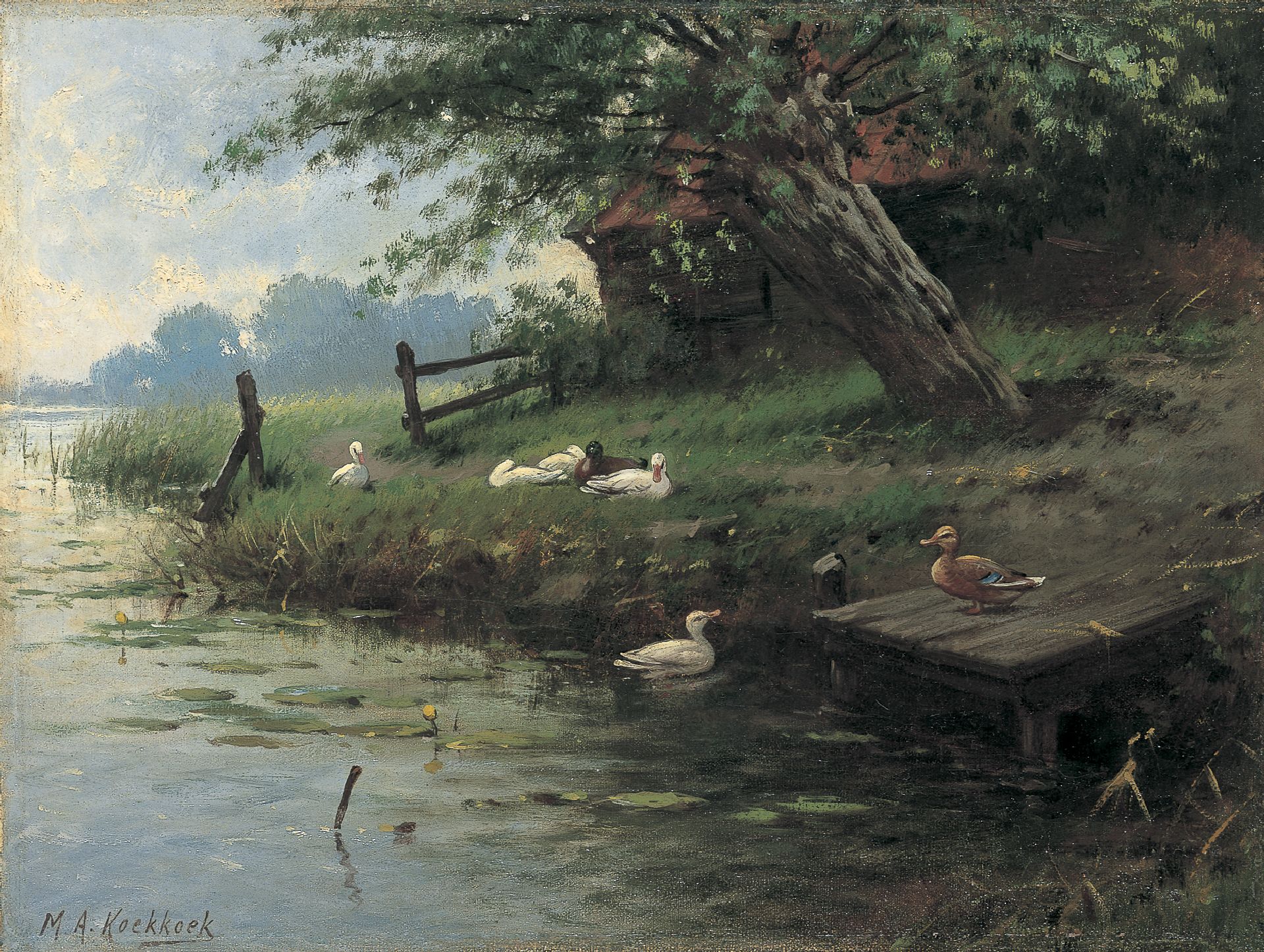 Marinus Adrianus Koekkoek II kunstwerk • schilderij • voorheen te koop Eendjes op de wallekant