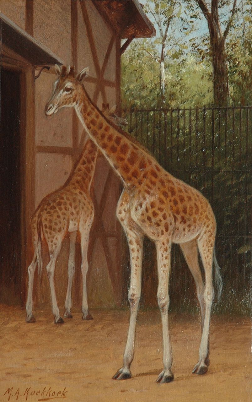 Marinus Adrianus Koekkoek II kunstwerk • schilderij • voorheen te koop Giraffen in Artis
