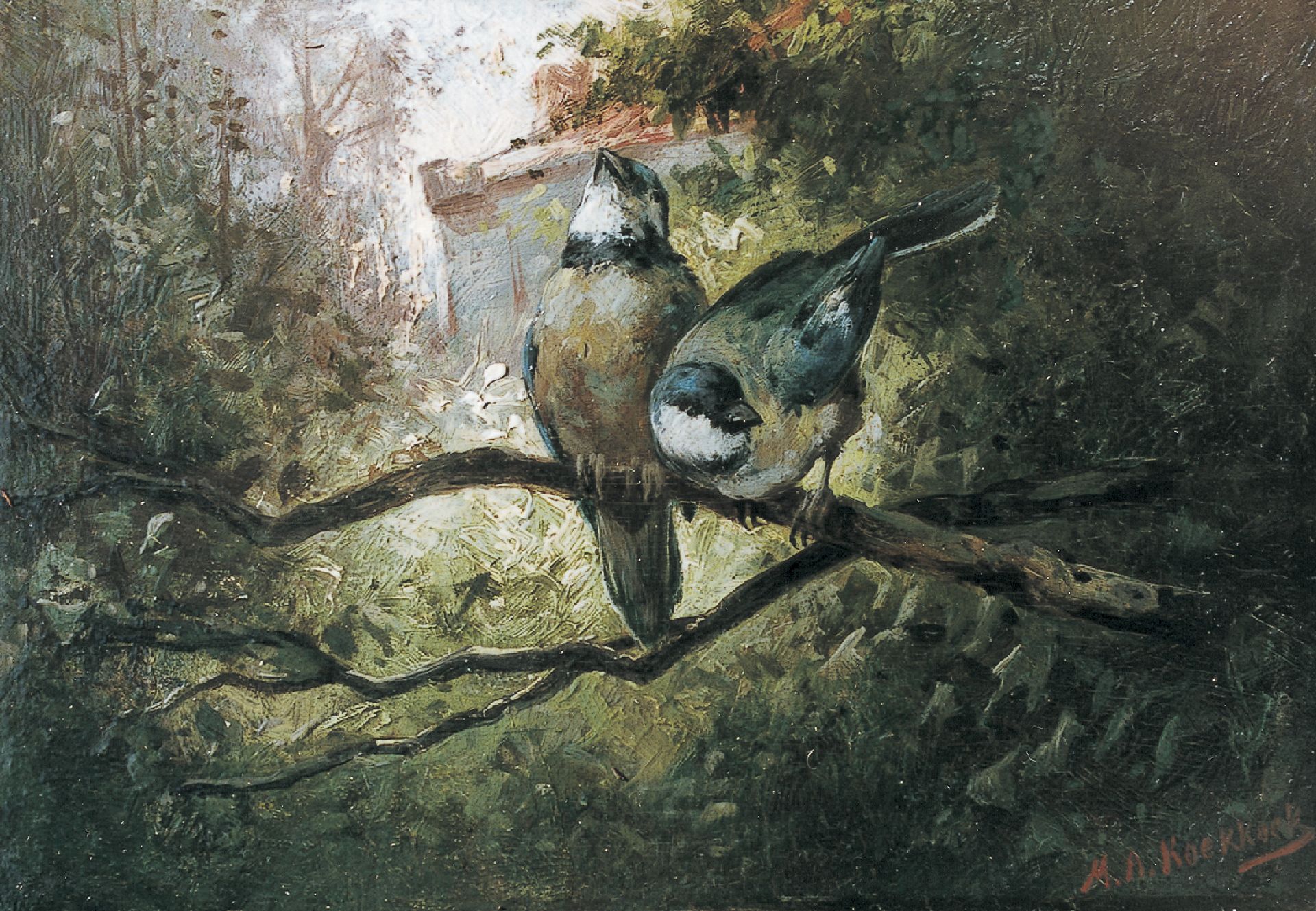 Marinus Adrianus Koekkoek II kunstwerk • schilderij • voorheen te koop Pimpelmeesjes