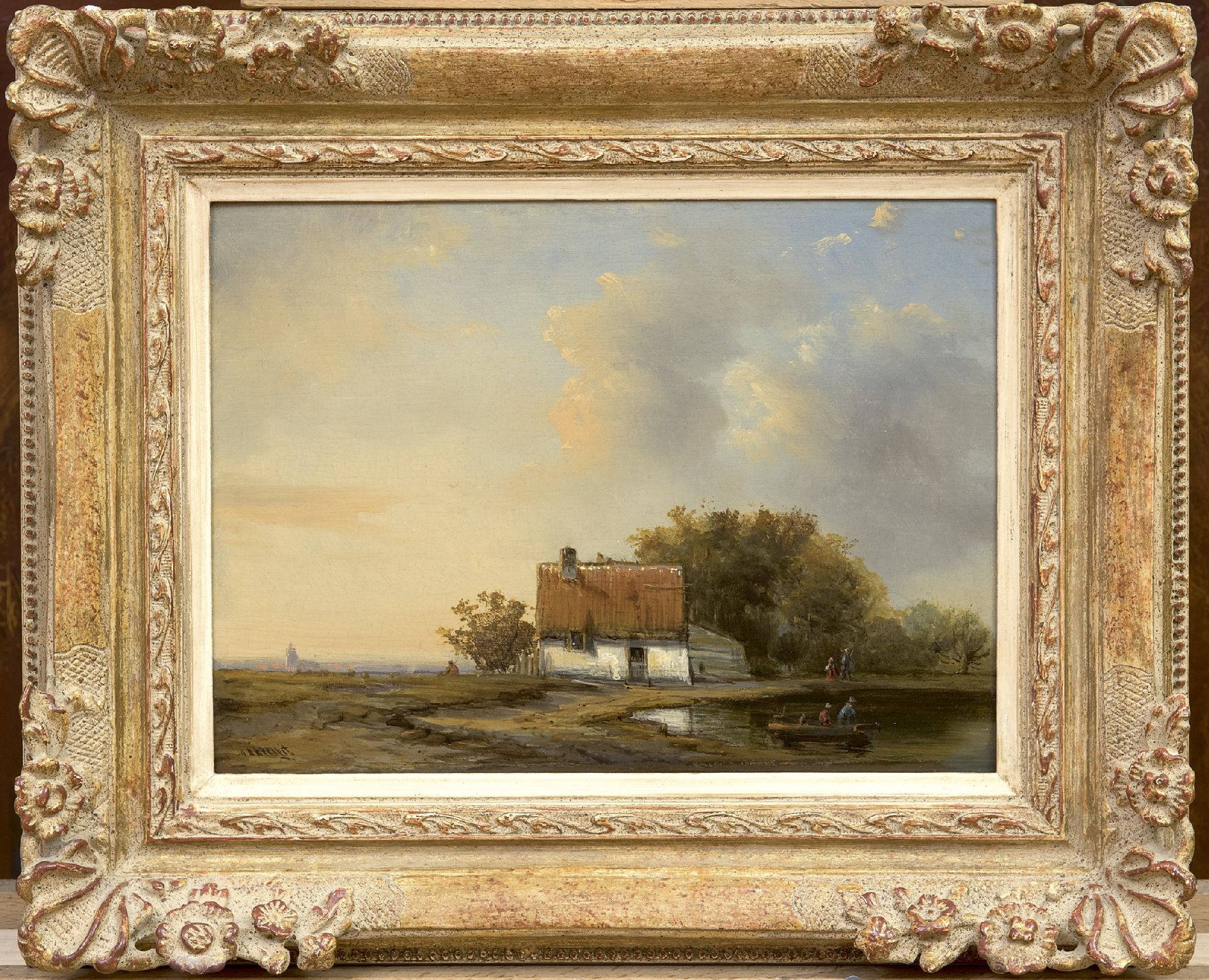 Marinus Albertus Kiewiet kunstwerk • schilderij • voorheen te koop Landschap met boerenhuisje