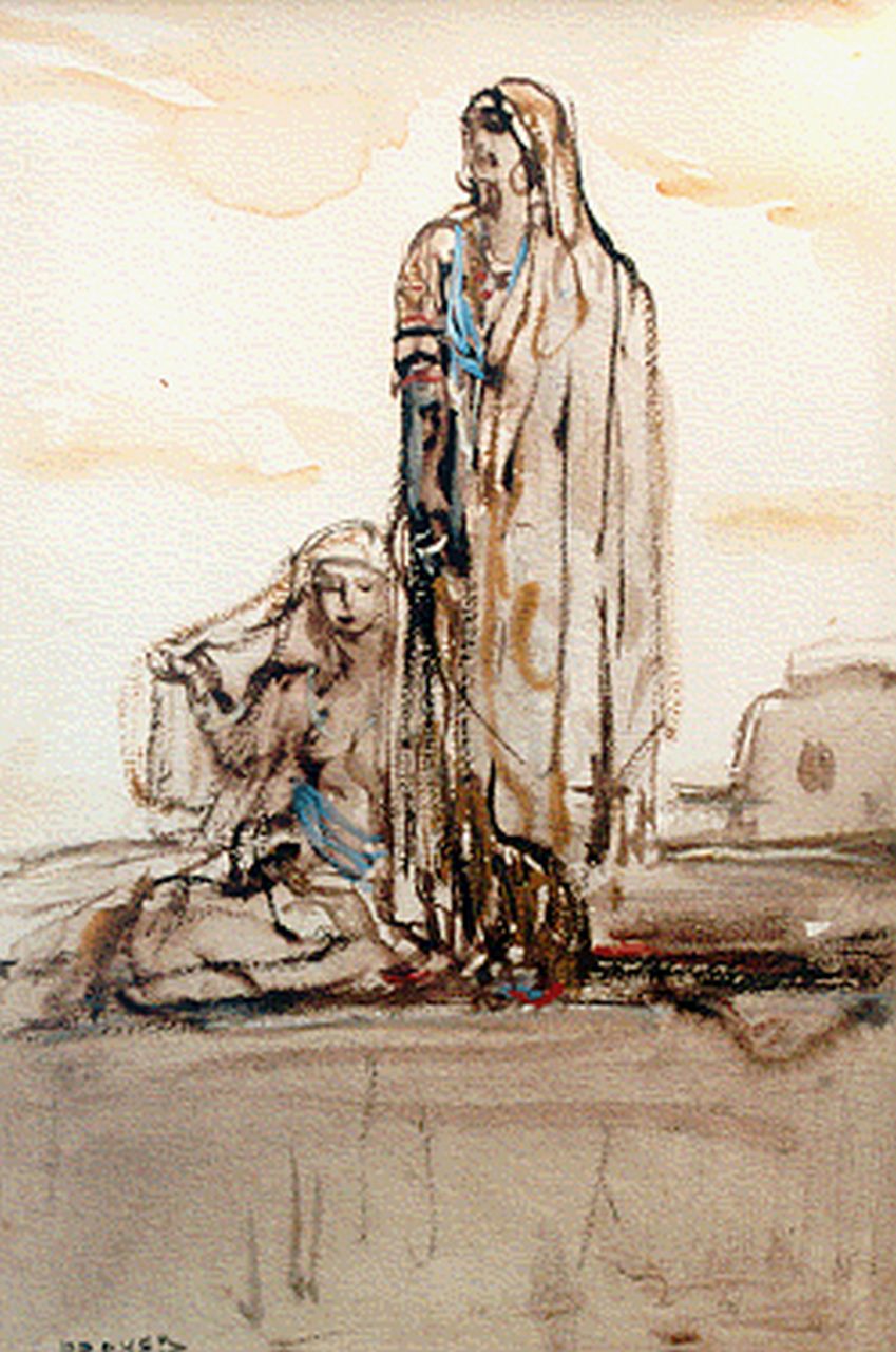 Marius Bauer kunstwerk • aquarel • tekening • voorheen te koop Oosterse vrouwen