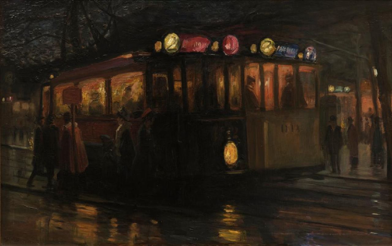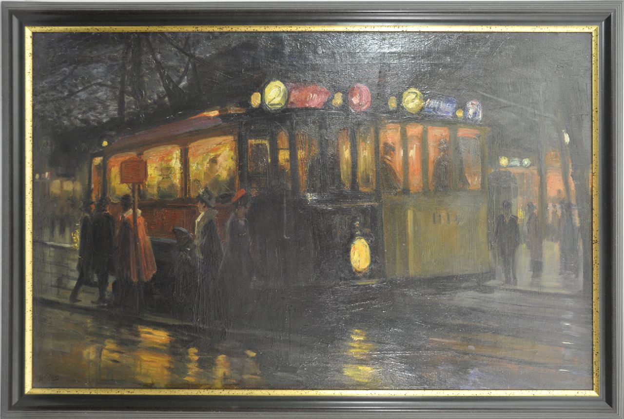Marius Richters kunstwerk • schilderij • voorheen te koop Trams bij het Beursplein, Rotterdam